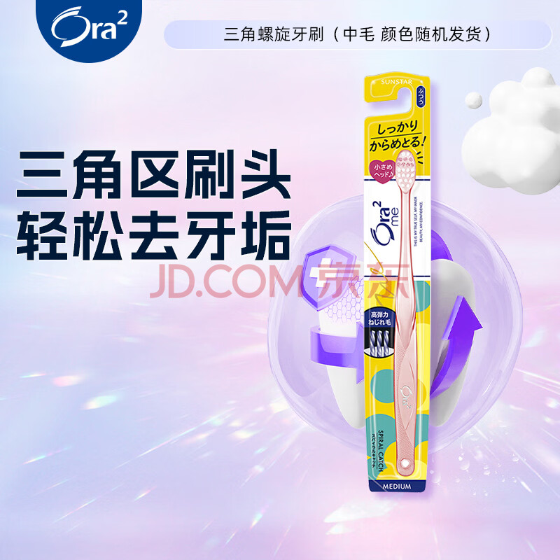 皓乐齿(Ora2)牙刷三角螺旋(中毛)小刷头深层清洁 可刷舌苔 颜色随机发货