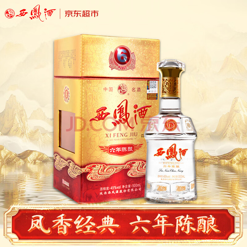 西凤酒 6年 六年陈酿经典水晶瓶 45度 500ml 单瓶装 凤香型白酒