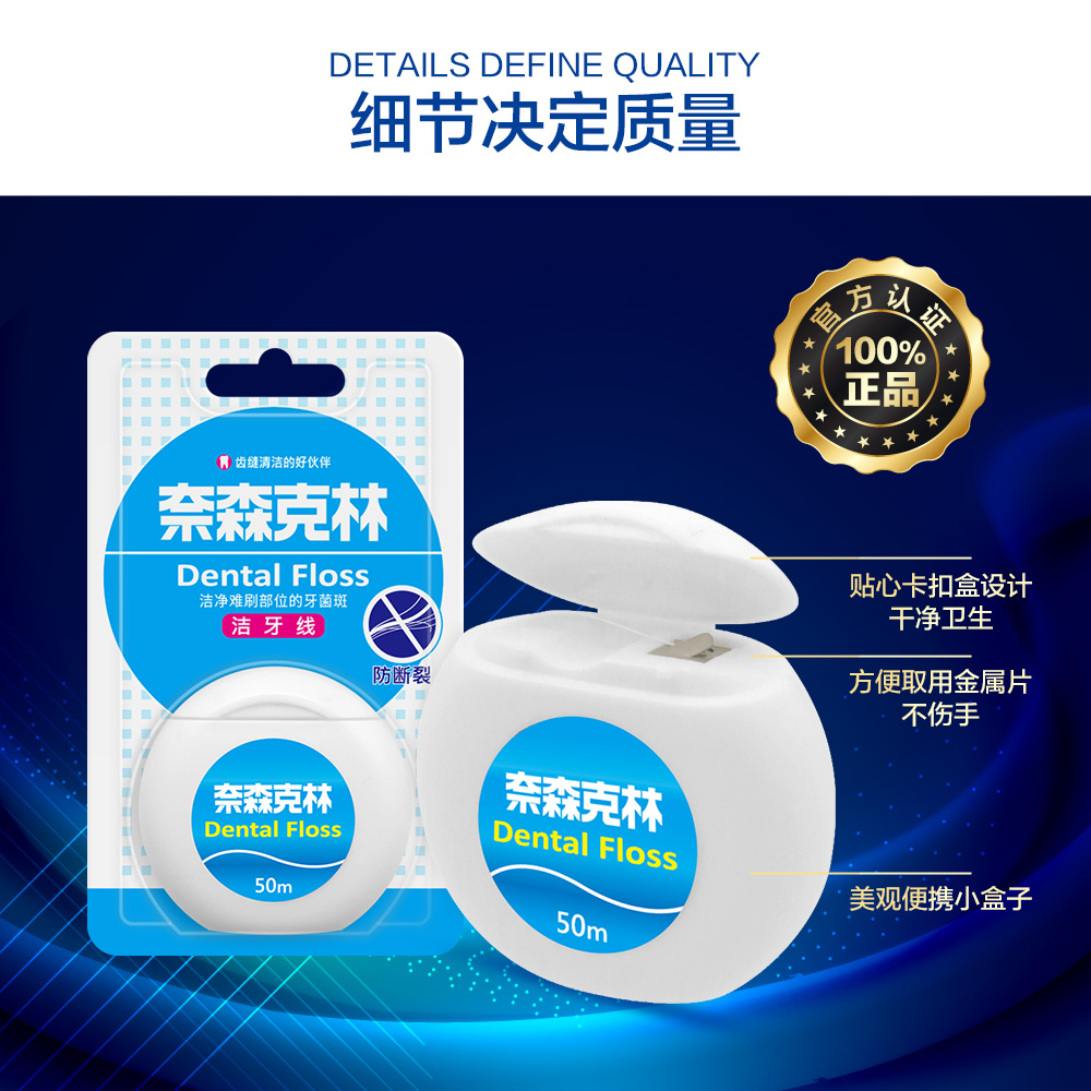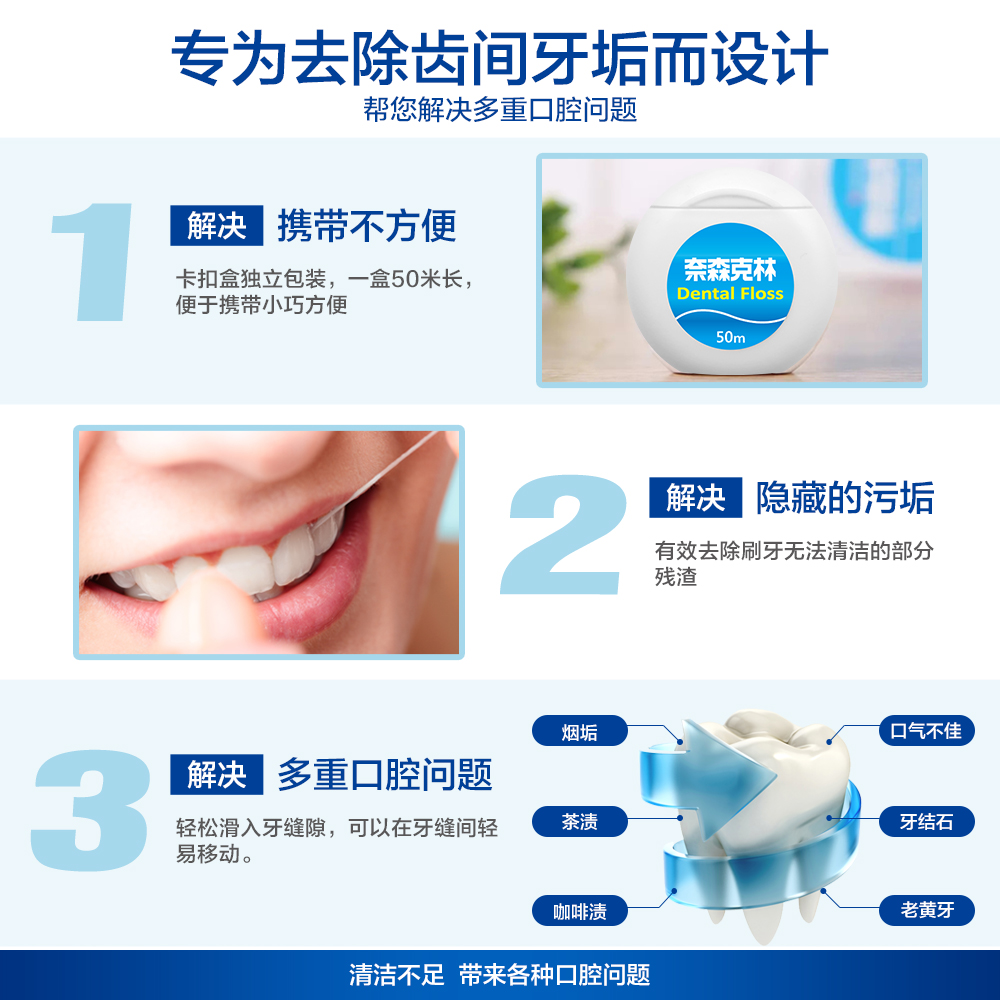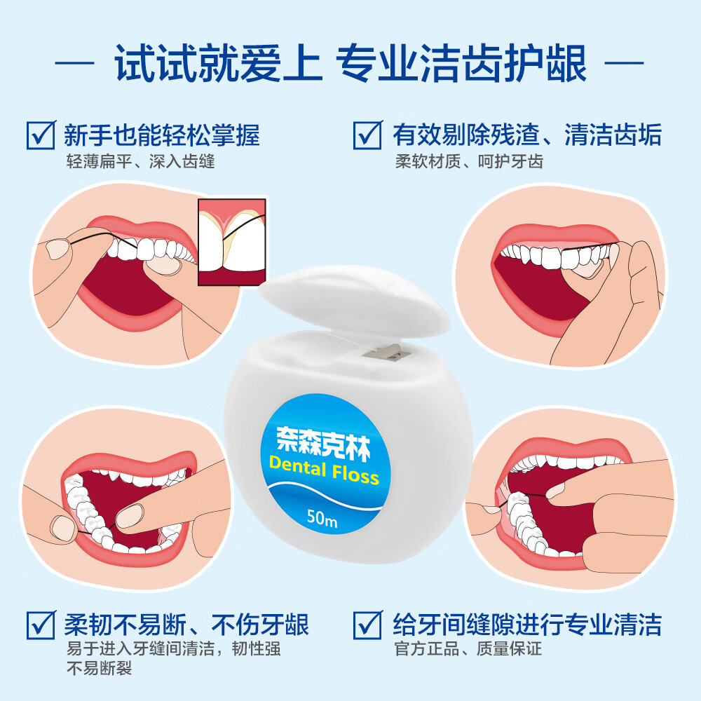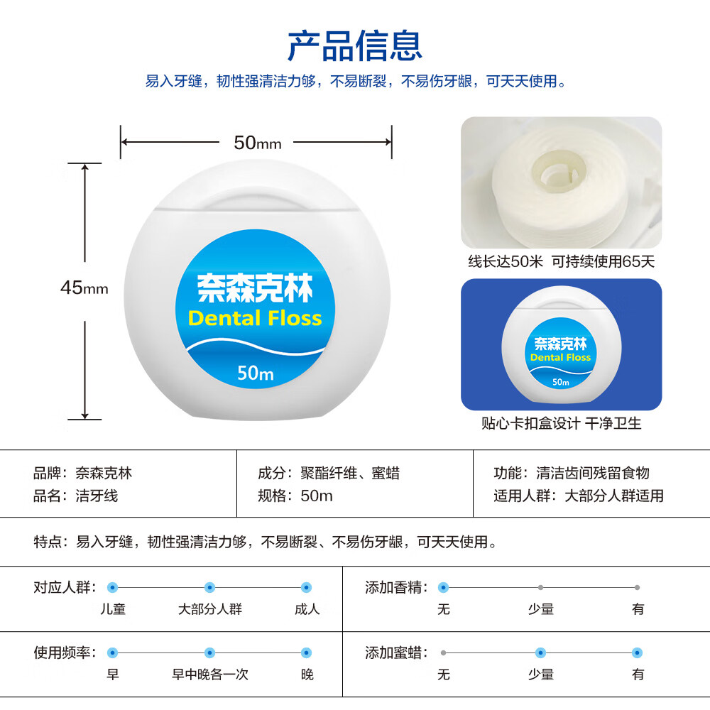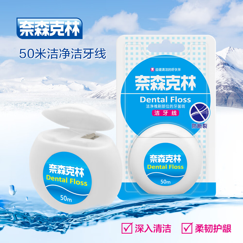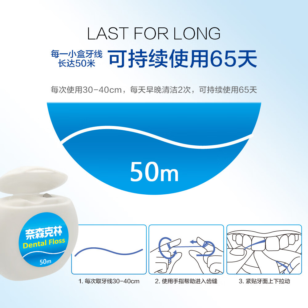 奈森克林 洁净洁牙线 便携牙签线剔牙线口腔齿缝清洁护理 50m*1卡