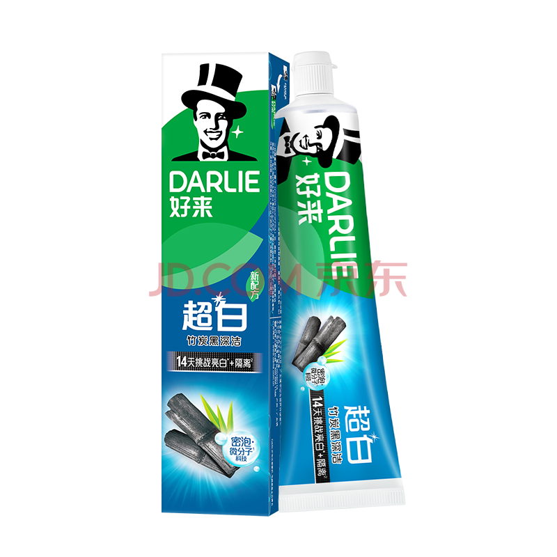 好来(DARLIE)(原黑人)超白竹炭深洁牙膏温和清新去牙渍亮白含氟190g新旧包装