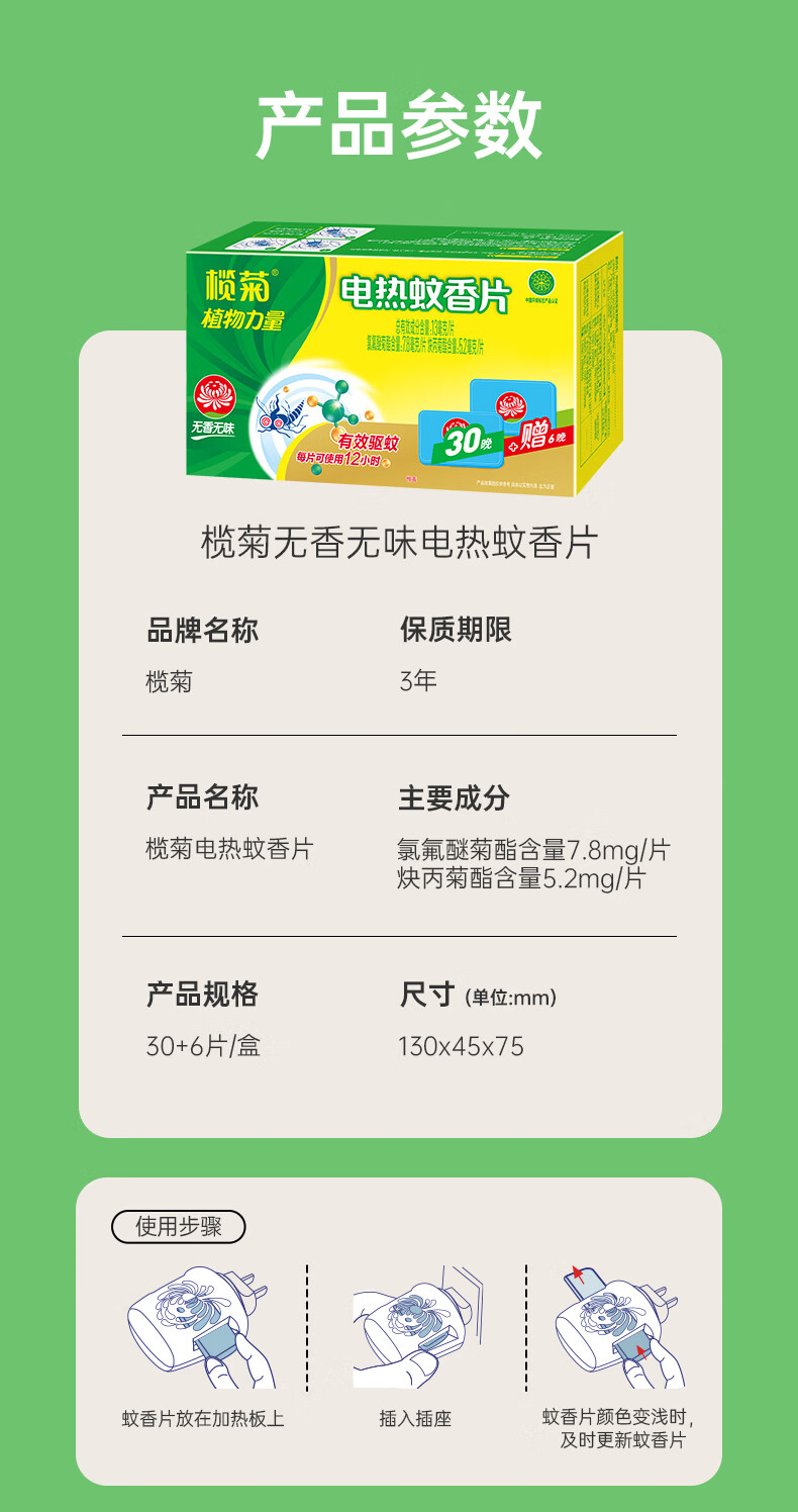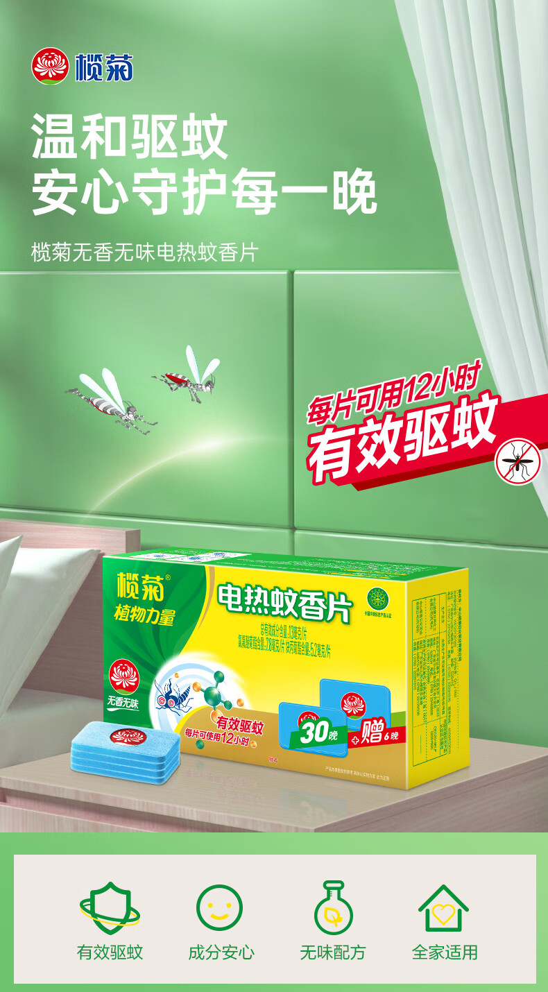 榄菊电热蚊香片36片无香型补充装不带器电蚊香驱蚊防蚊片灭蚊电蚊香片