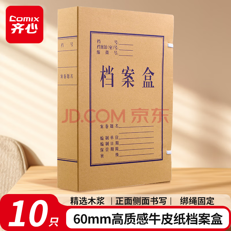 齐心(COMIX)10个装 60mm高质感牛皮纸档案盒 A4文件资料盒 办公文具AG-60