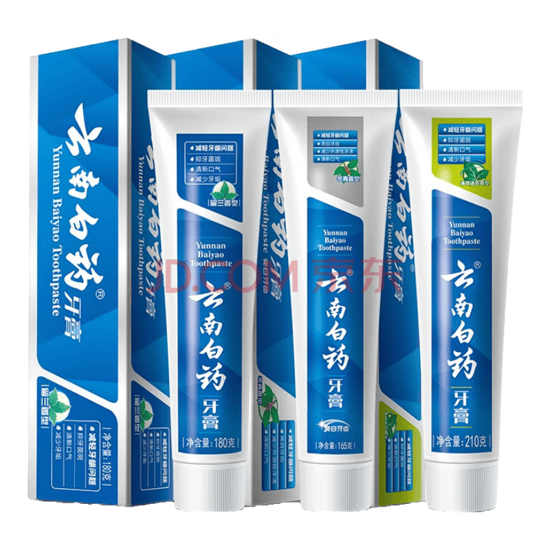 云南白药牙膏经典人气护口套装祛渍护龈亮白清新口气成人牙膏3支共555g