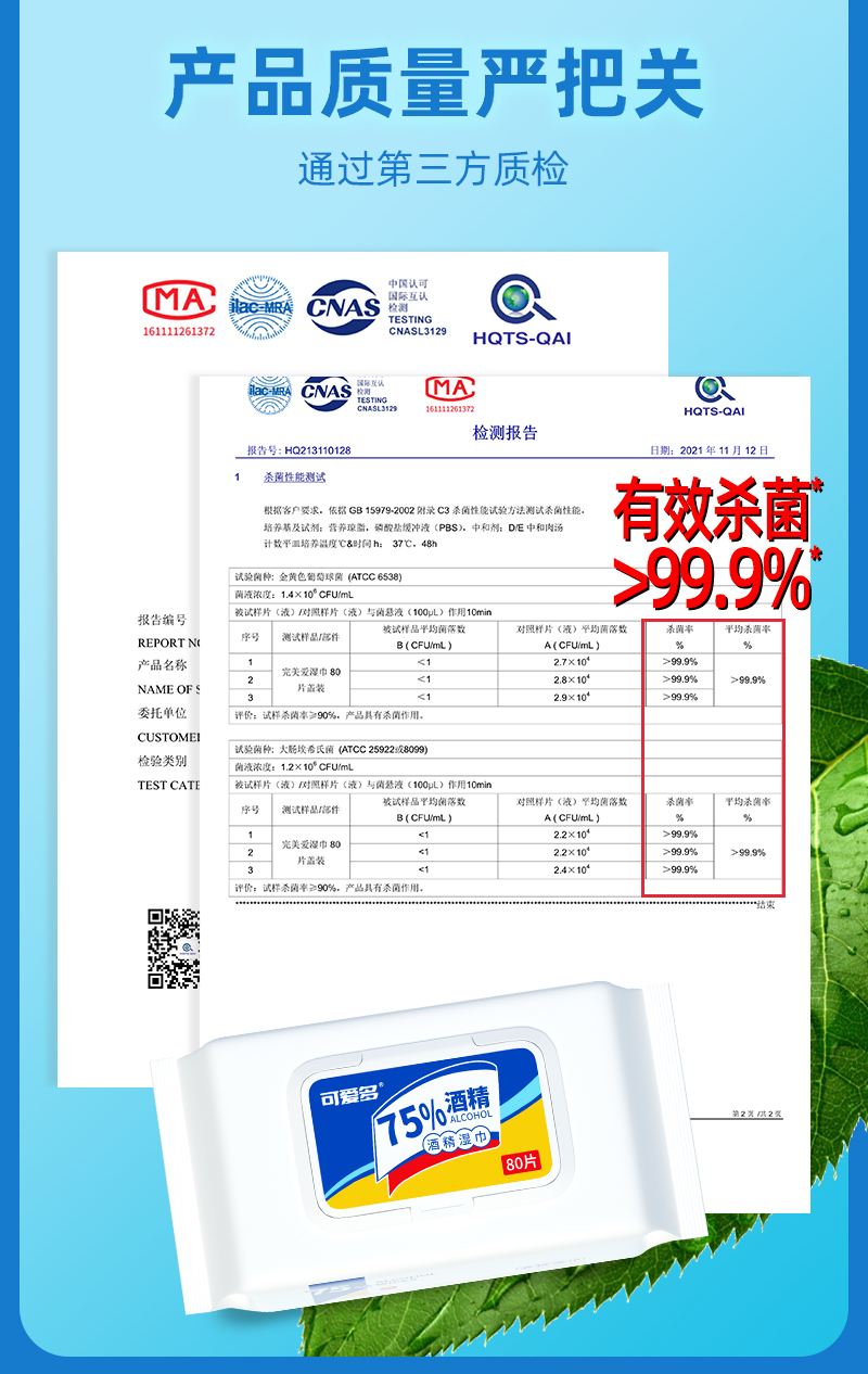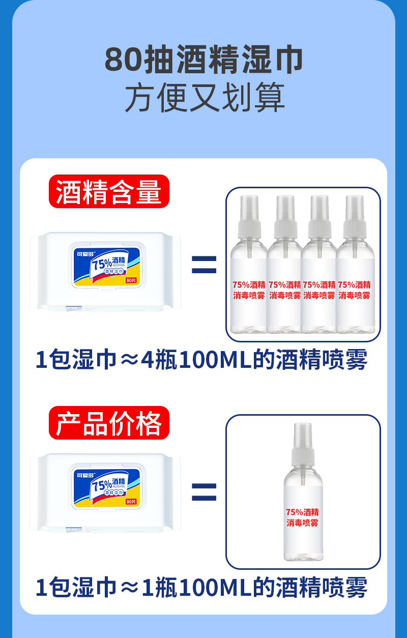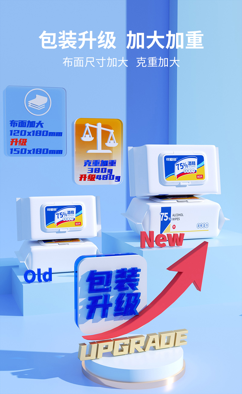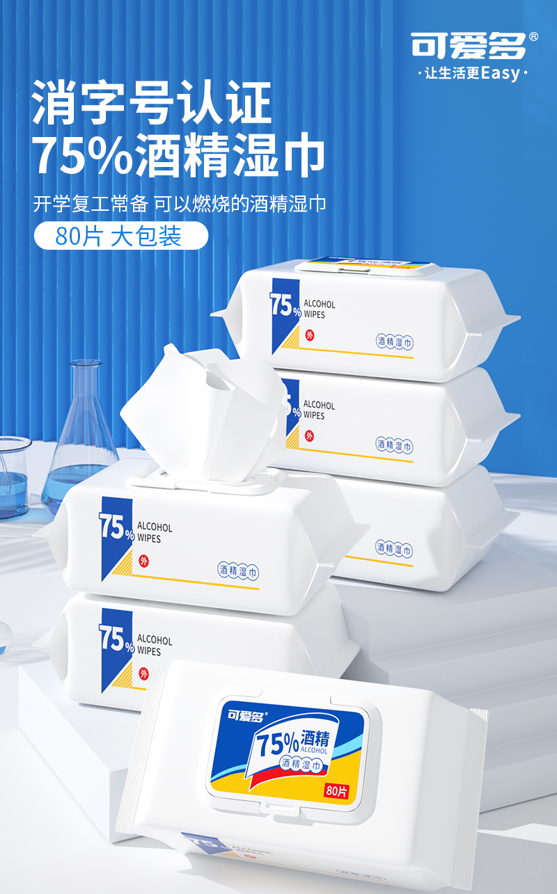 可爱多酒精湿巾80片盖巾*3包 大包实惠75度酒精湿巾纸巾清洁消毒杀菌