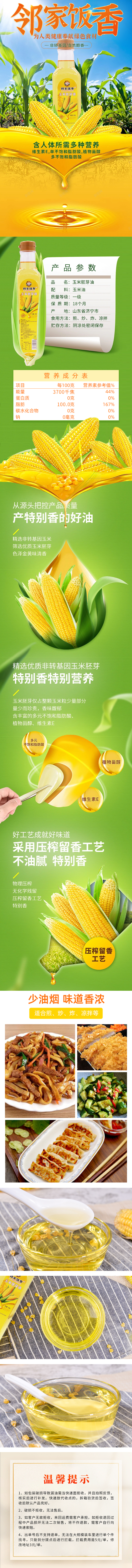 邻家饭香 非转基因 物理压榨一级玉米胚芽油 500ml/瓶 LJFX34