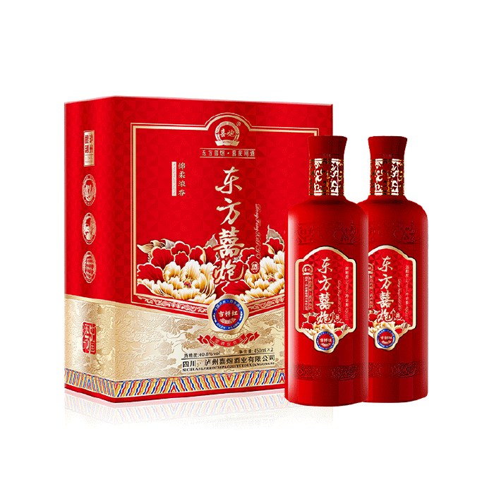 东方喜炮★吉祥红40.8度 浓香型白酒 双支礼盒装 450ml*2