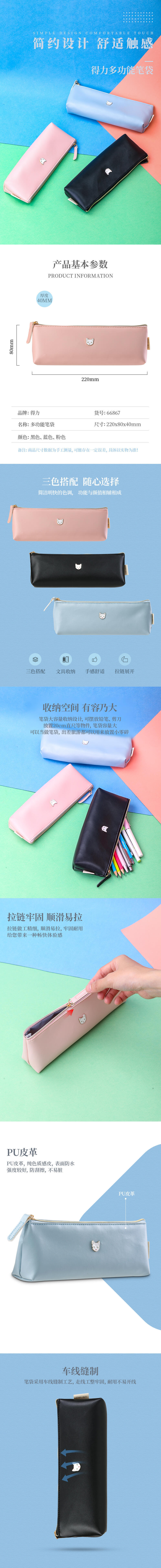 得力(deli)大容量笔袋加厚文具盒牛津布拉链铅笔盒高颜值简约铅笔袋. 66866【颜色随机】