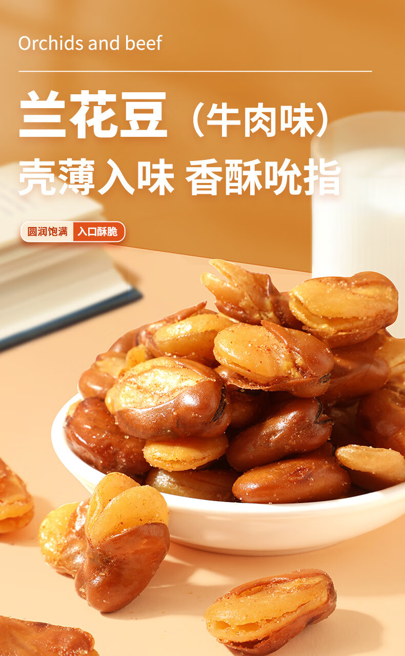 味滋源兰花豆坚果炒货休闲零食地方特产小吃蚕豆休闲零食 牛肉味258gx2袋 袋装