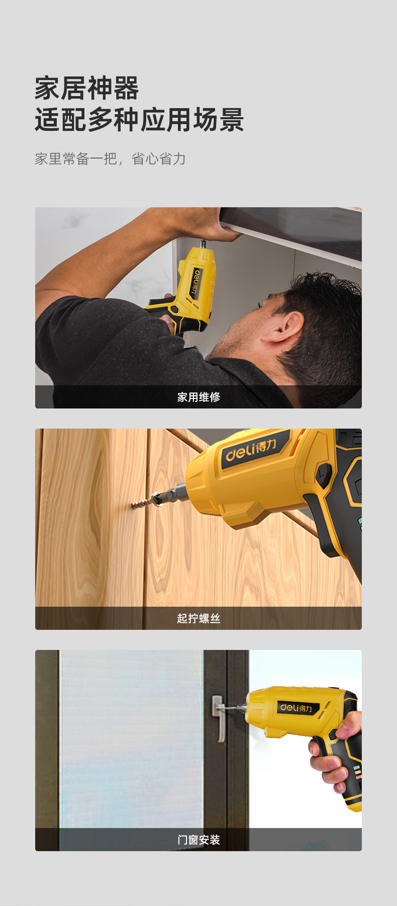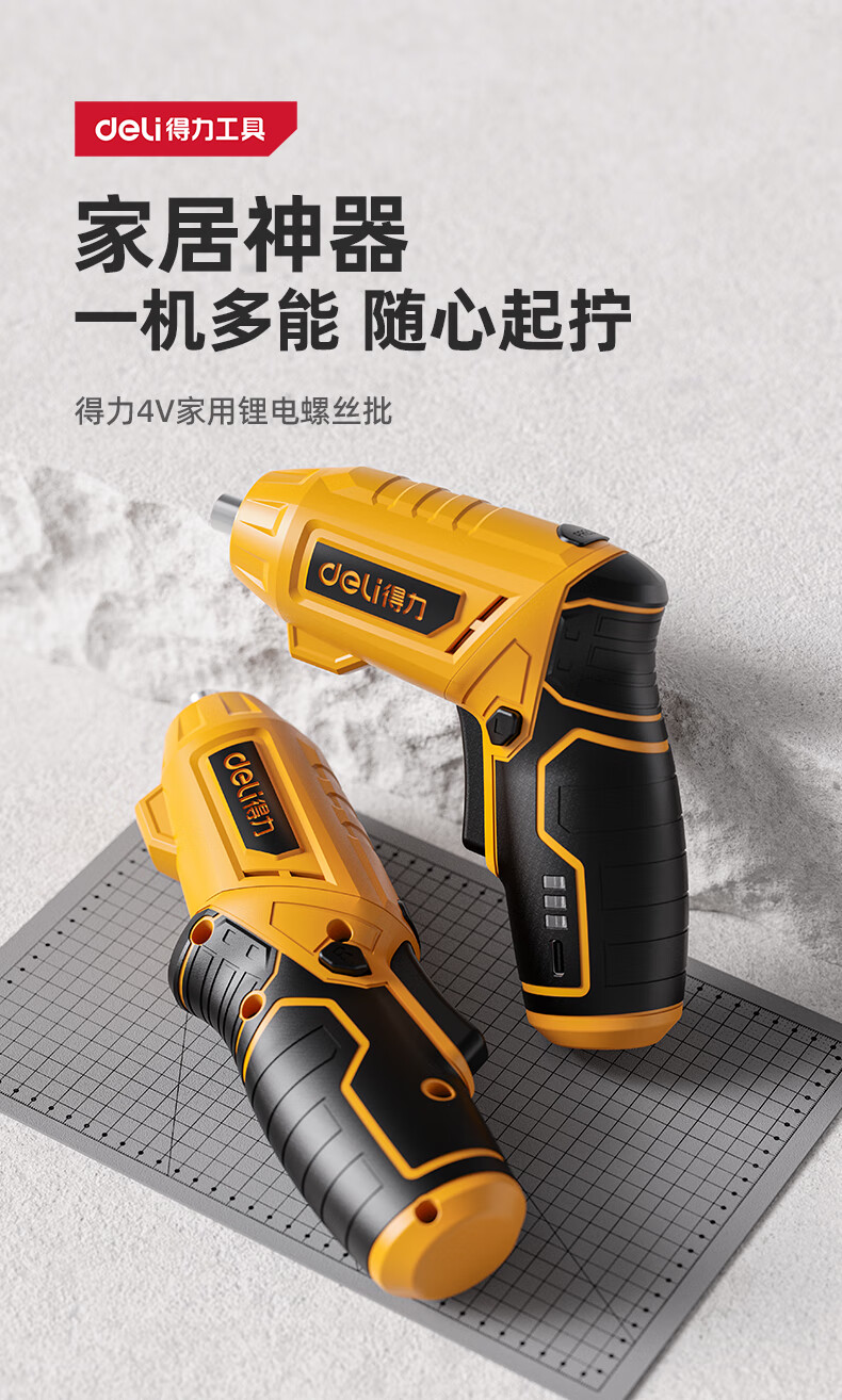 得力(deli)home系列家用电动工具箱套装8件锂电钻钢卷尺螺丝批组套 7.2V锂电钻8件套 HT0208