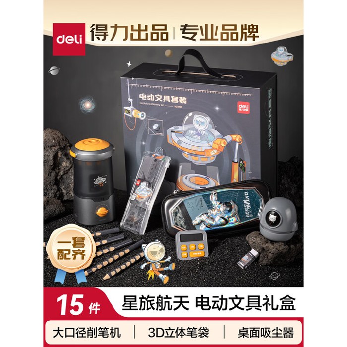 得力(deli)学生大口径电动文具礼盒套装电动削笔机铅笔计时器文具盒生日开学礼物奖励开学大礼包15件套