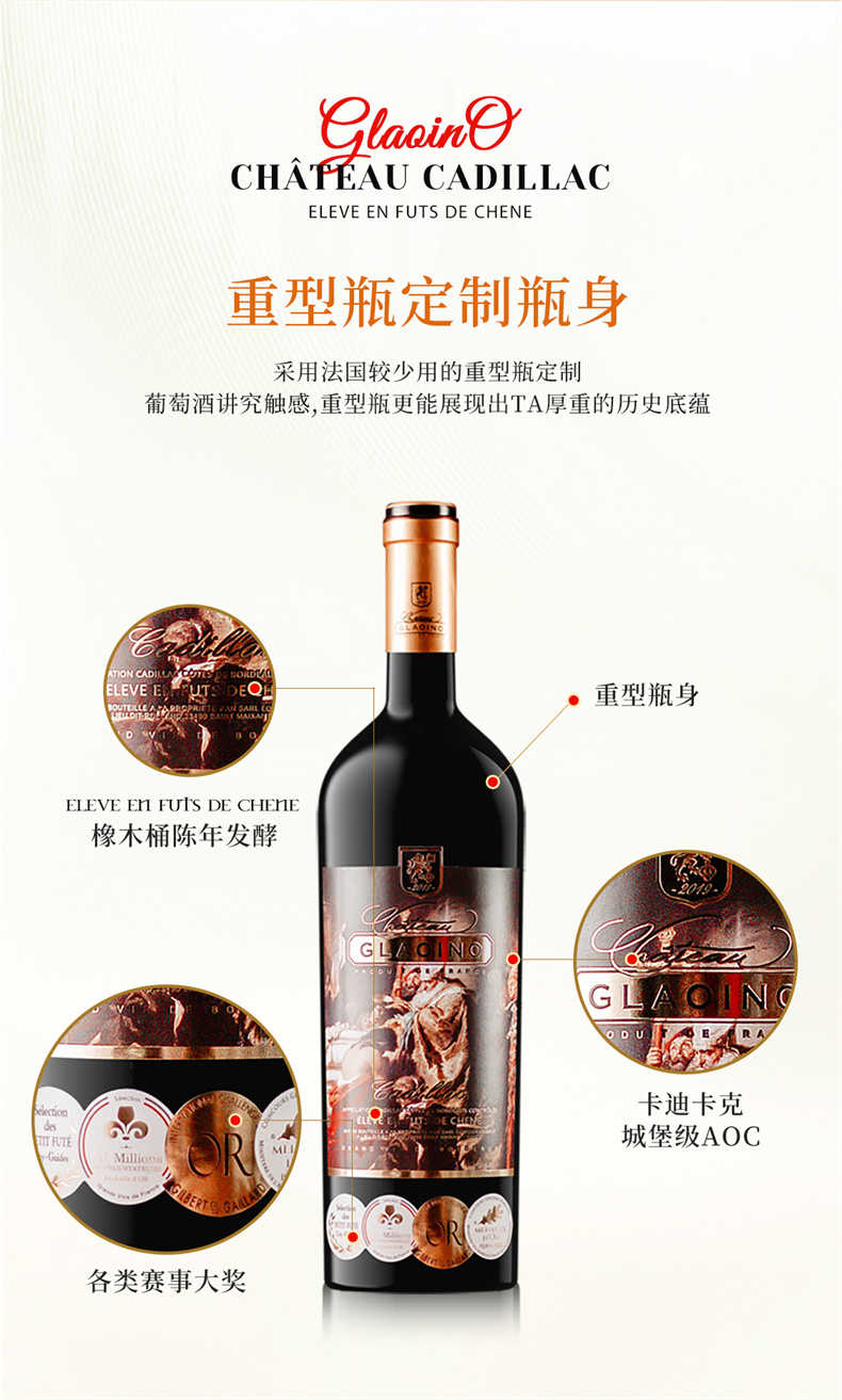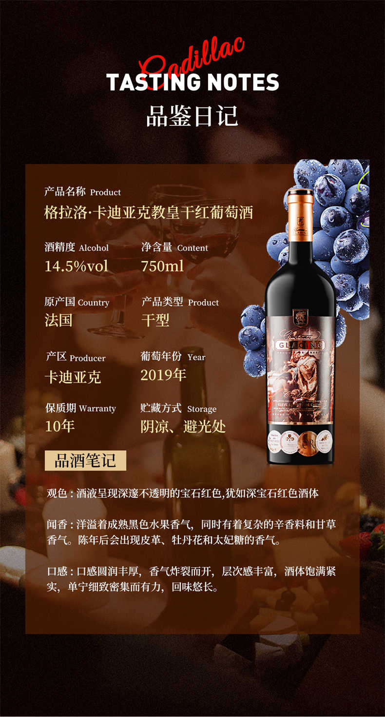 法国原瓶进口 卡迪亚克教皇干红葡萄酒 精美礼盒装750ml*6瓶