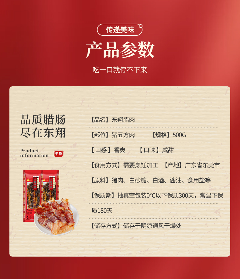 【东莞特产】东翔腊肉猪肉广式腊肠送礼纯肉年货