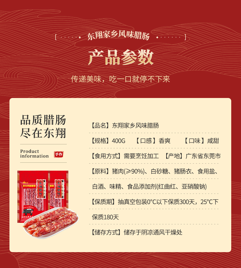 【东莞特产】东翔家乡风味腊肠纯猪肉正宗广式腊味