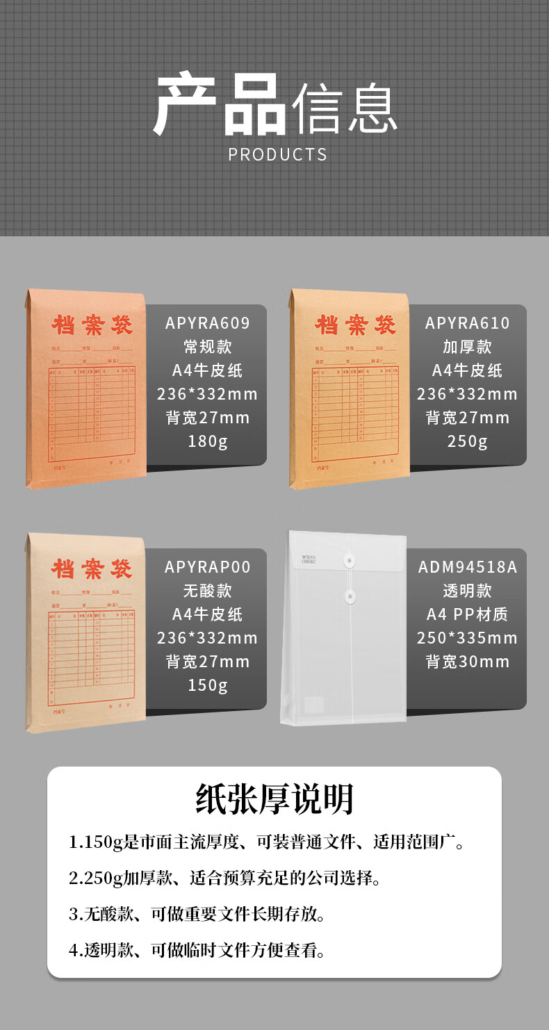 【20个装】晨光(M&G)档案袋牛皮纸A4文件袋收纳袋投标合同收纳袋子办公用品