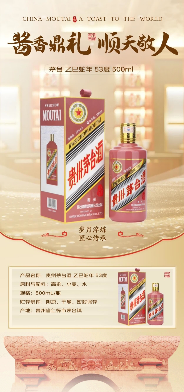 【粤强精选】53°蛇年生肖茅台 酱香型白酒 500ml/瓶