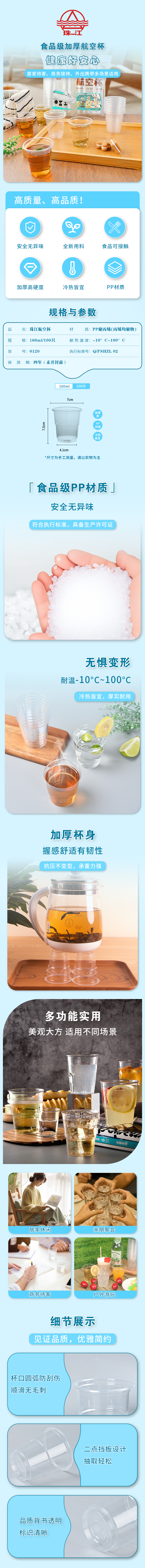 珠江牌一次性水杯塑料杯子大容量加厚食品级耐高温商用家用