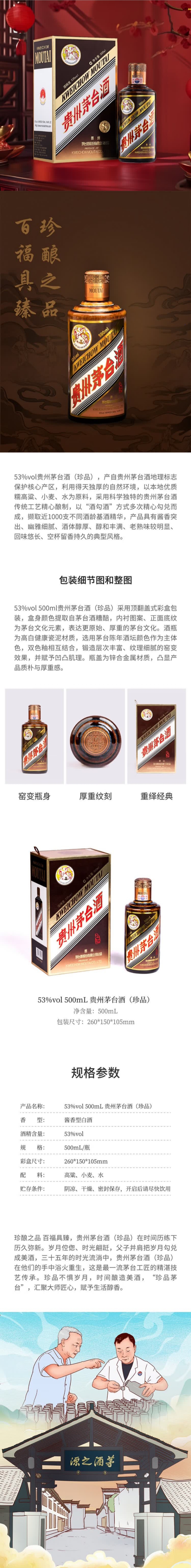 【粤强精选】珍品茅台 彩釉珍品 酱香型白酒 53度 500ml 接待送礼用酒