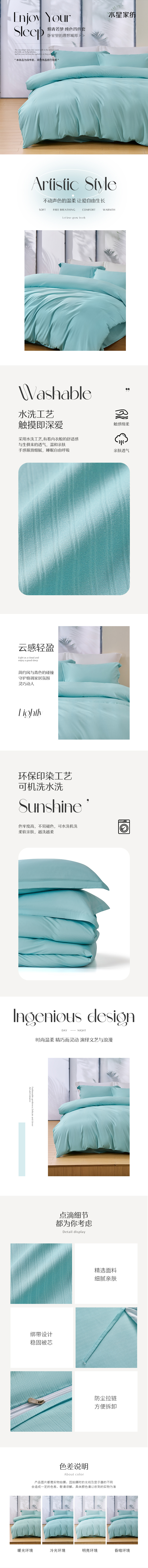 水星家纺(烟青若梦)A类水洗提花抗菌四件套床单被套枕套 床上用品