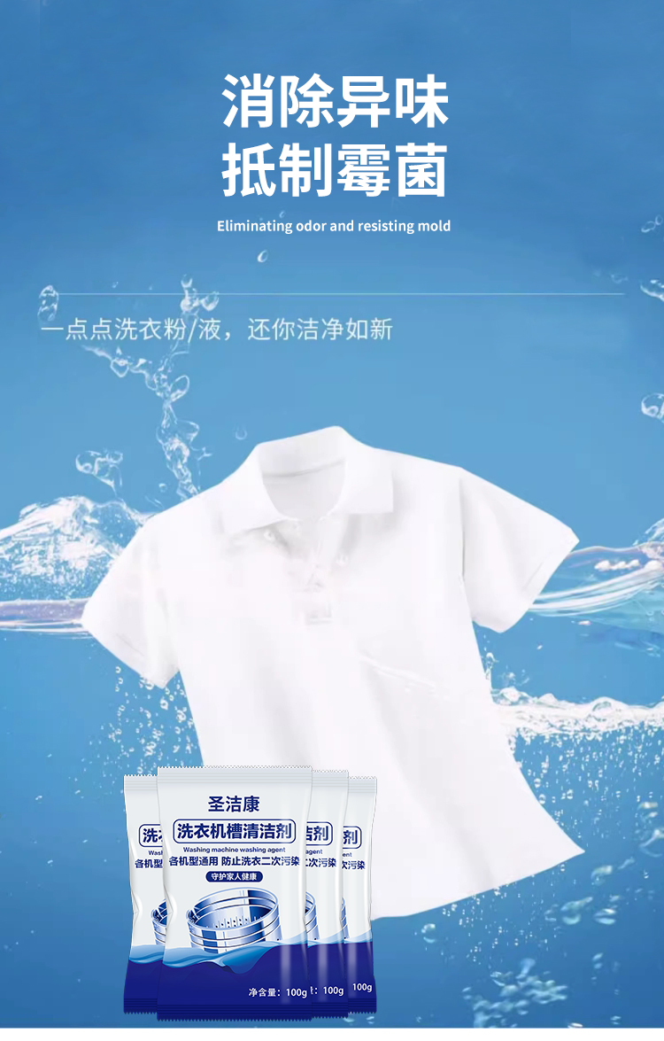圣洁康洗衣机槽清洗剂100g/包 波轮滚筒洗衣机清洗剂清洁剂