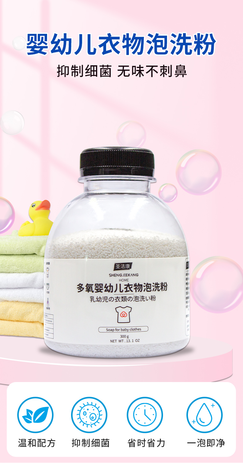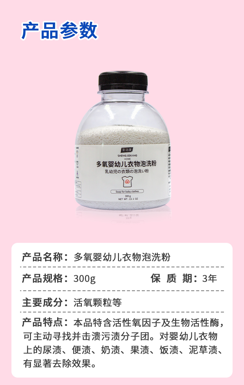 圣洁康多氧婴幼儿衣物泡洗粉300g/桶 增白去渍家用爆炸盐洗衣粉