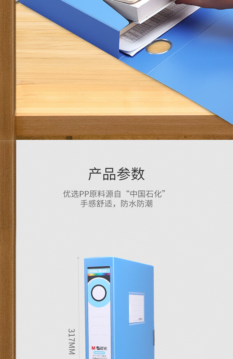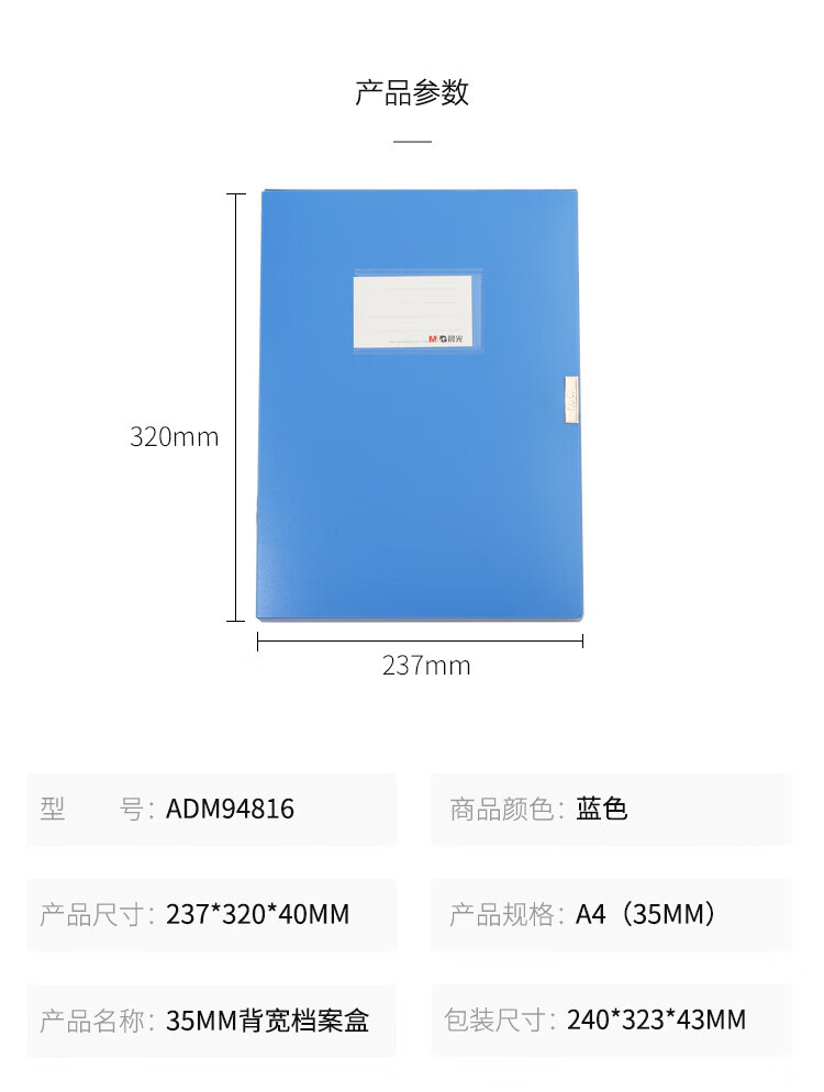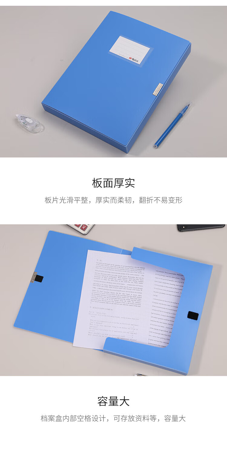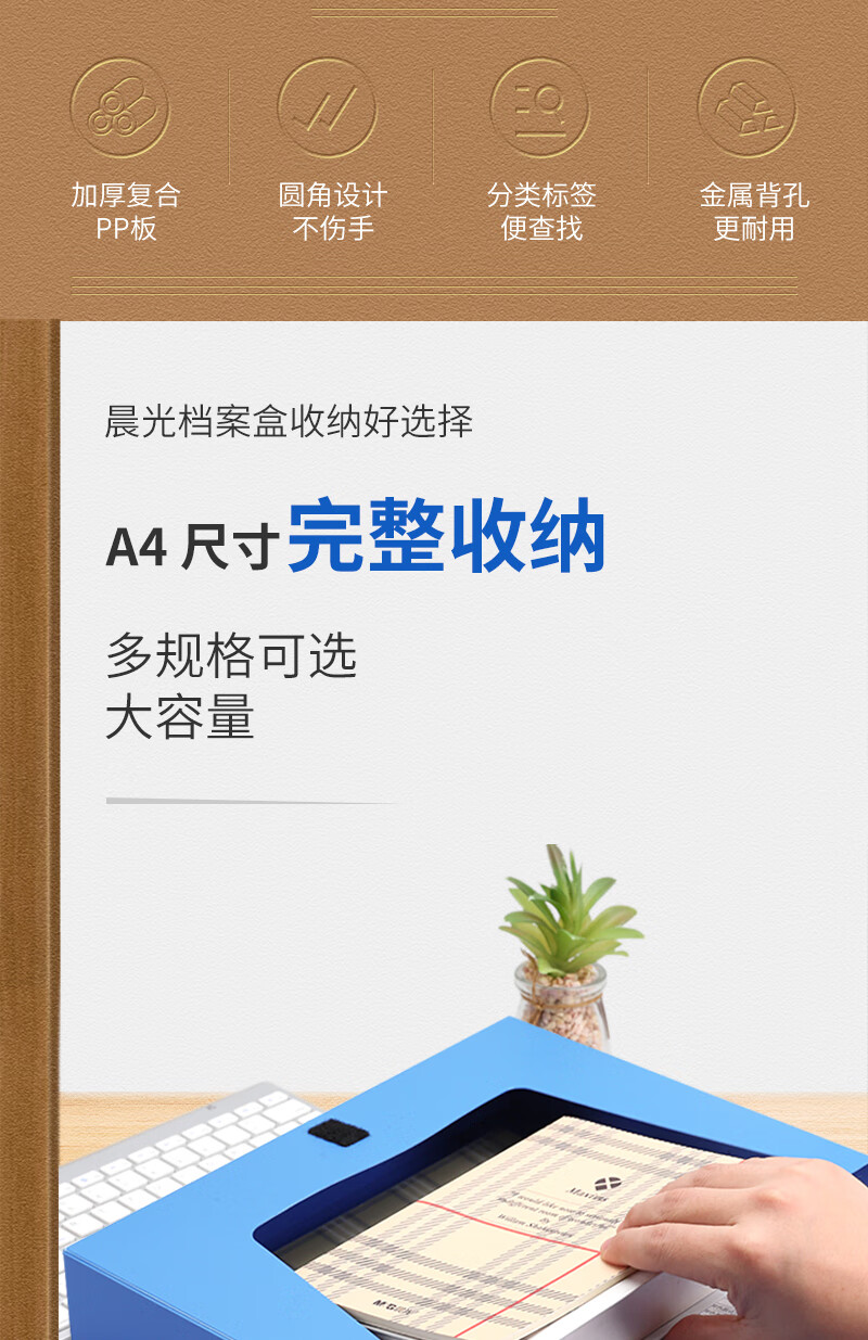 晨光(M&G)档案盒文件收纳整理 耐用牢固粘扣A4文件盒资料盒 单个装