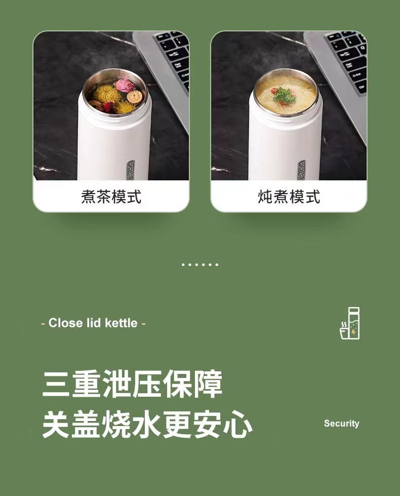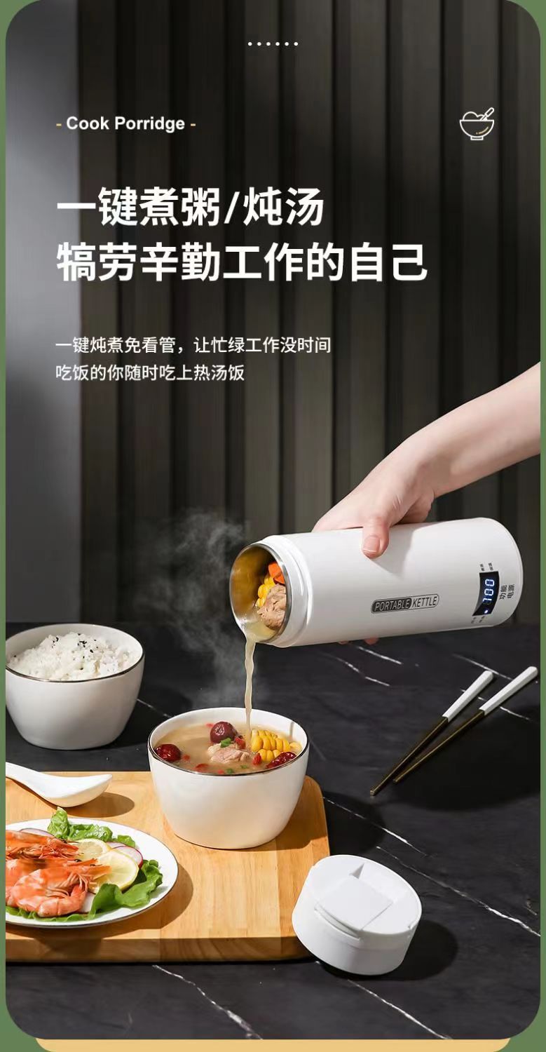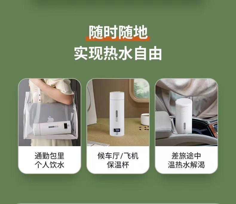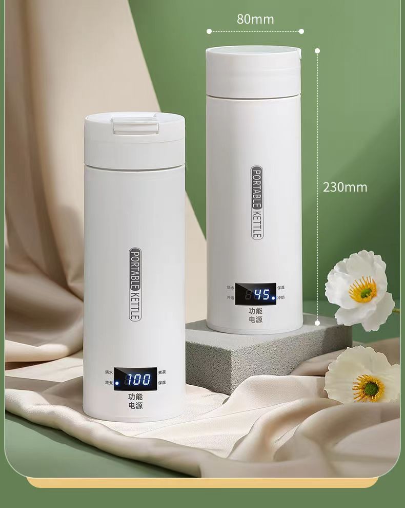 贤宝能电热水杯便携式烧水杯旅行家用宿舍食品级不锈钢内胆保温可煮茶煮水煮饭煮鸡蛋煮粥等 0.5L 【智能液晶款】