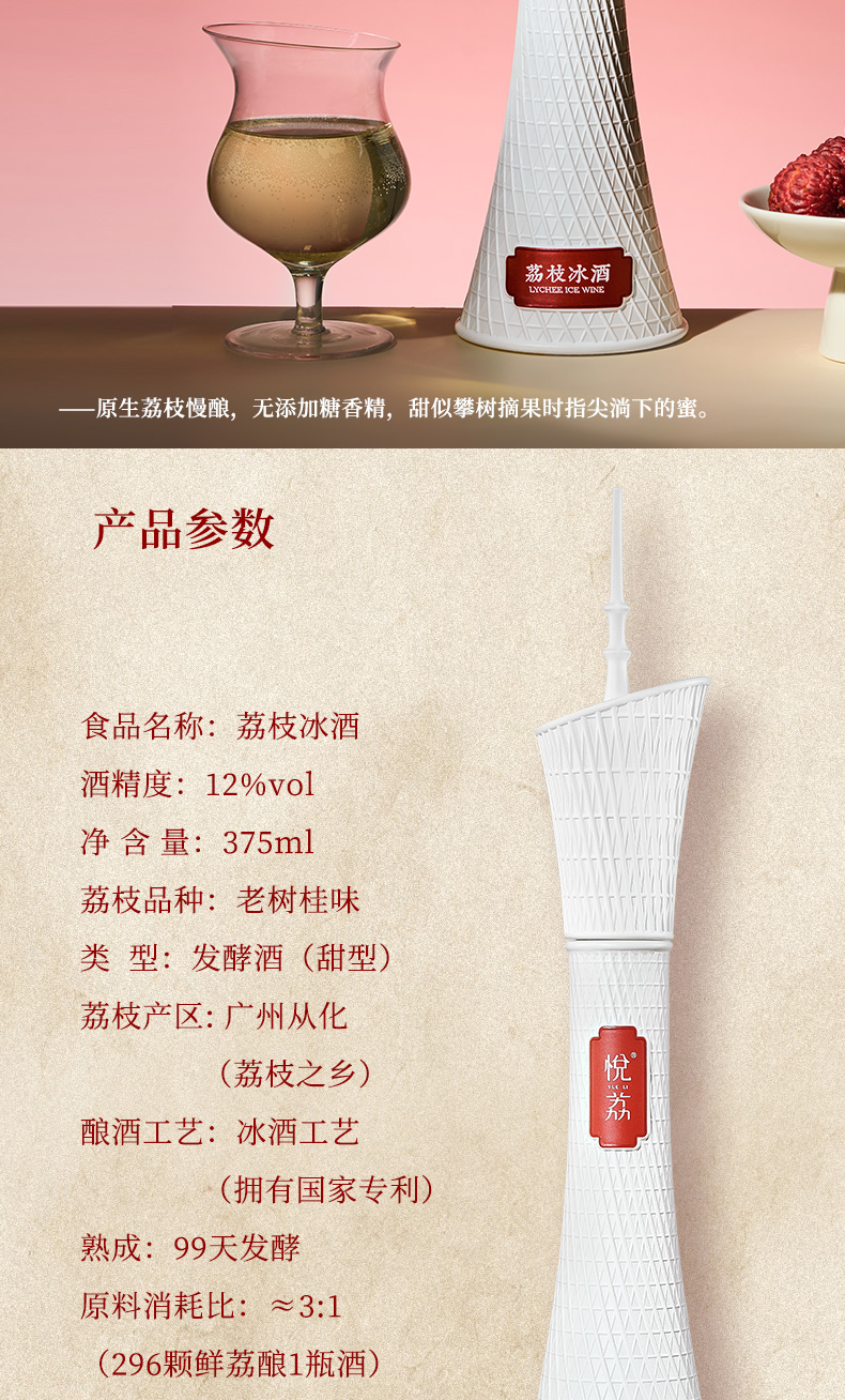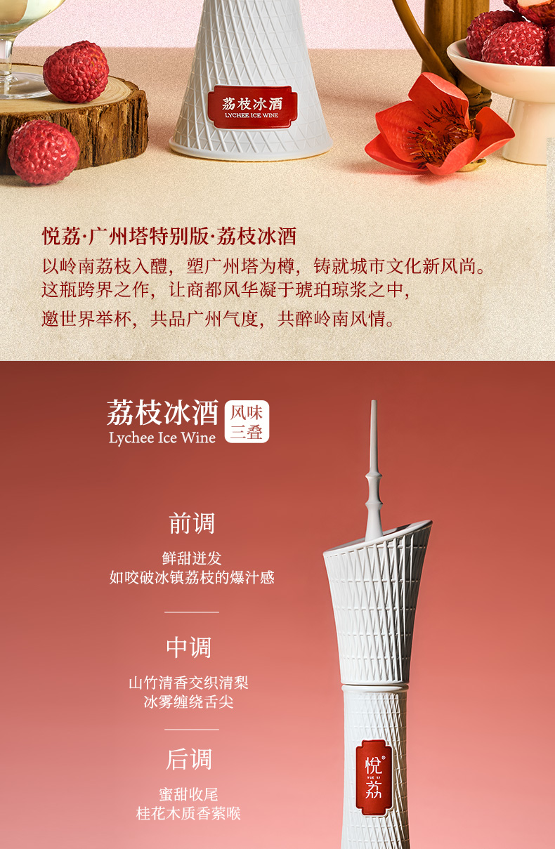 悦荔 荔枝冰酒375ml 广东特产荔枝酒 广州塔纪念品限定联名 12度冰酒水果酒 商务礼物广州礼物