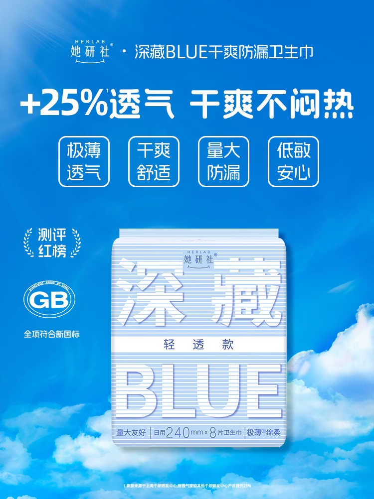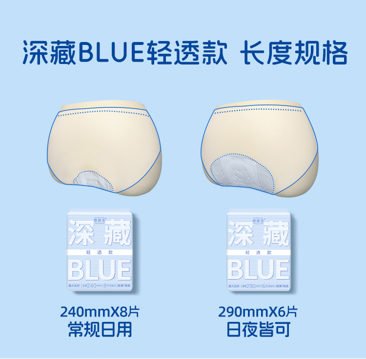 她妍社深藏blue轻透款卫生巾套装【日夜组合44片】干爽透气日用夜用姨妈巾