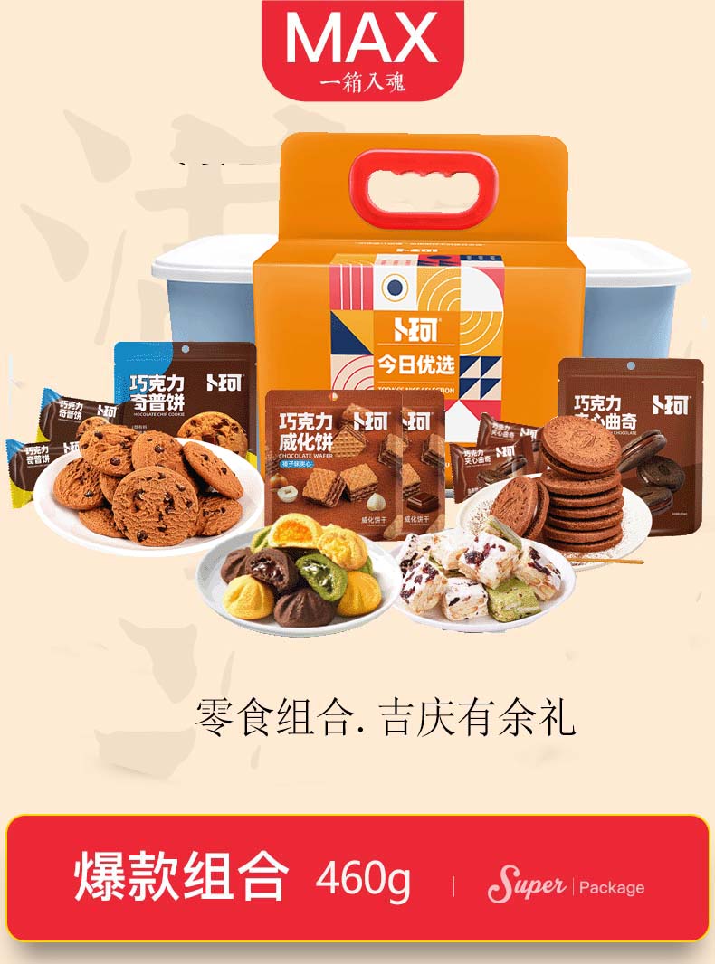 卜珂 零食组合.吉庆有余礼460克(三色随机发货)