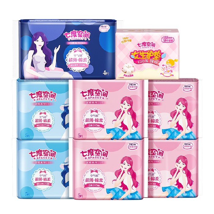 七度空间优雅系列超薄丝柔卫生巾组合52片装 日用夜用姨妈巾护垫迷你巾套装