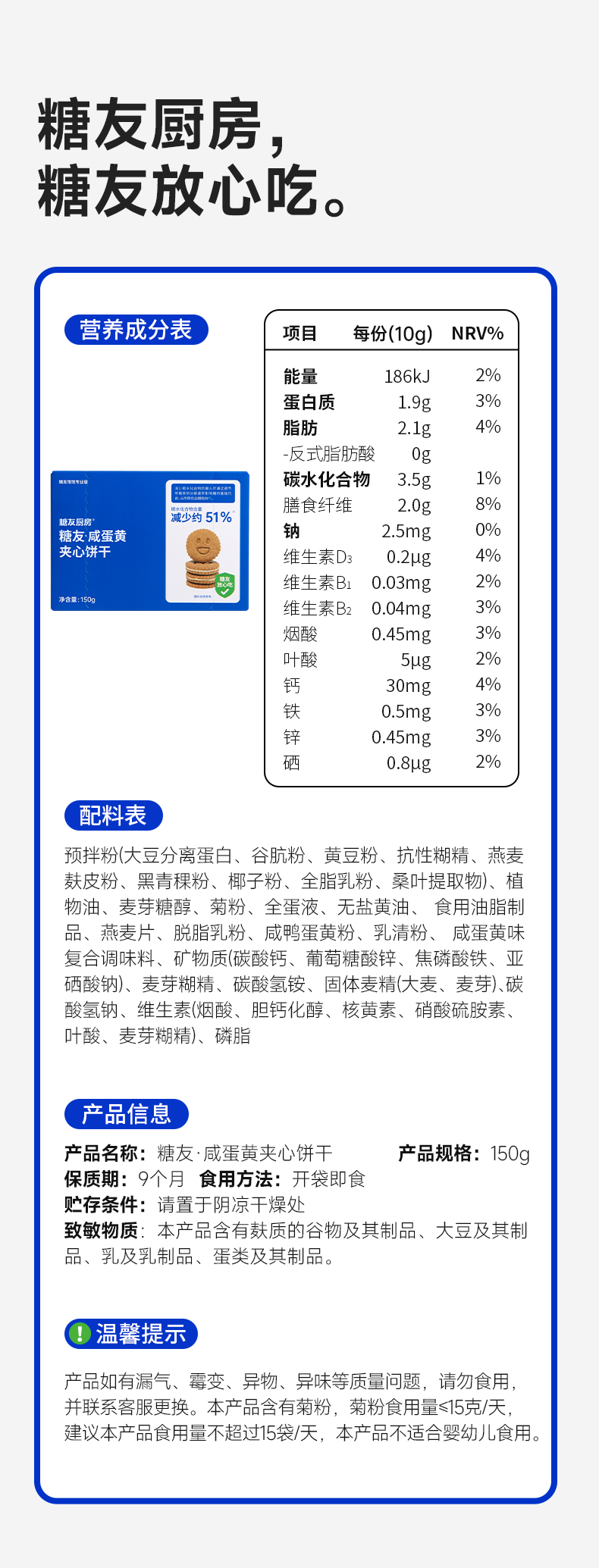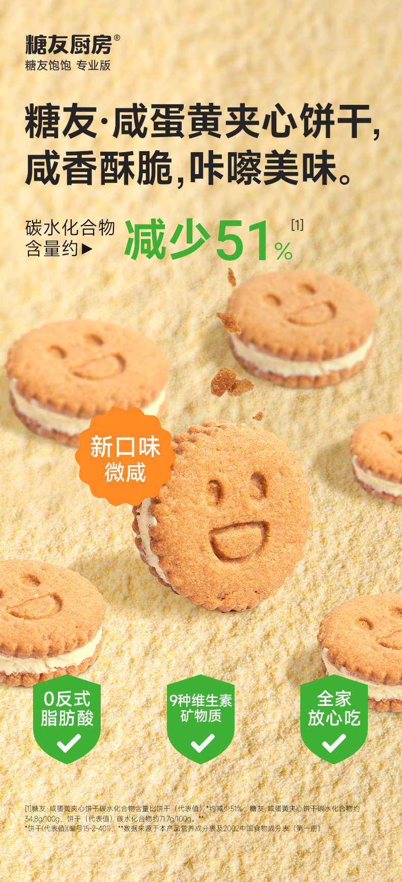糖友厨房糖友·咸蛋黄夹心饼干150g 零食品糕点心小吃代餐健康早餐