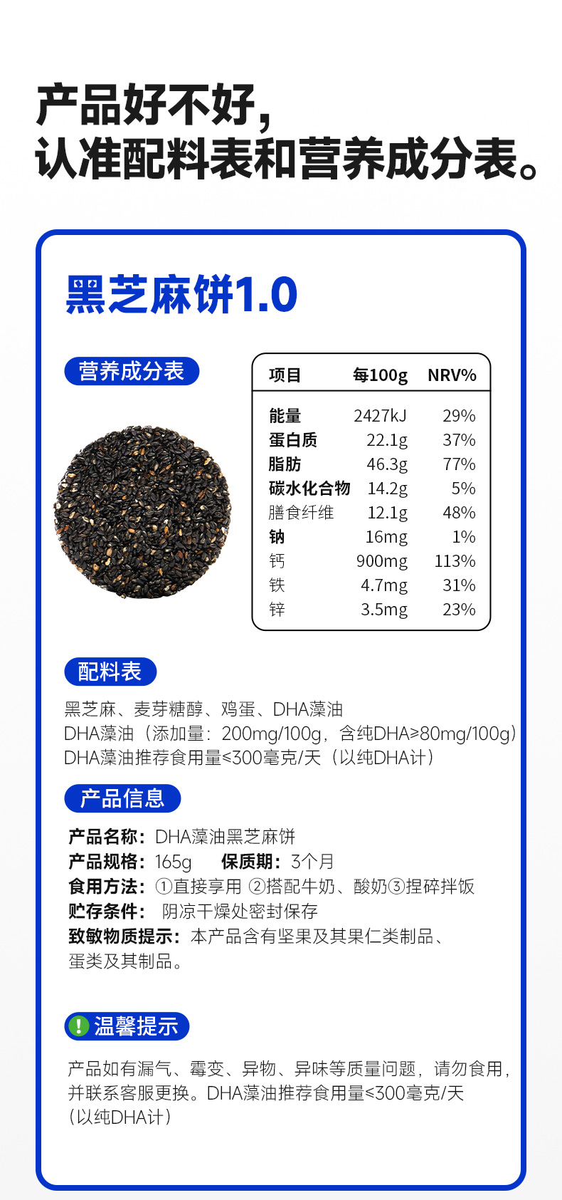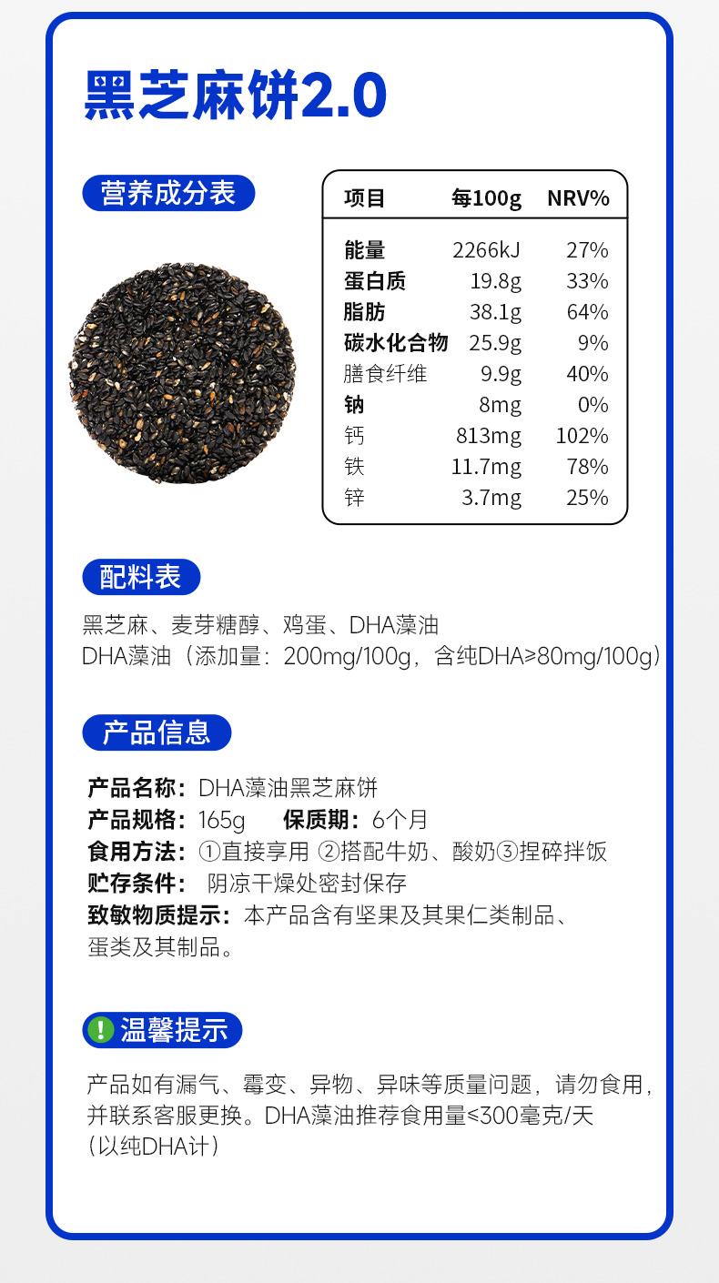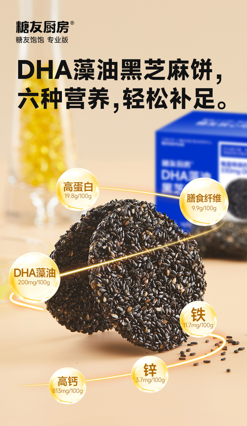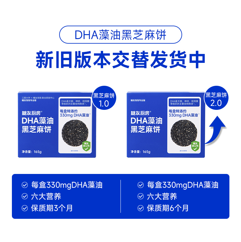 糖友厨房DHA藻油黑芝麻饼165g 营养饼干零食品糕点心小吃