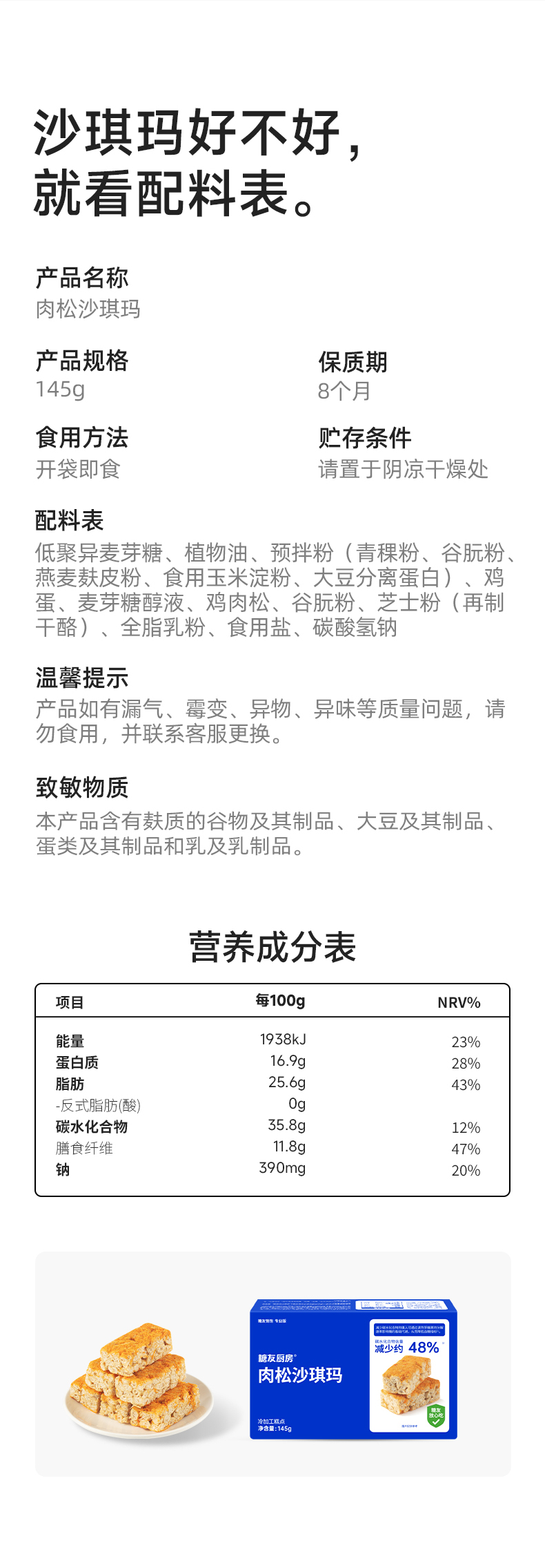 糖友厨房肉松沙琪玛145g/盒 代餐零食饱腹糕点心