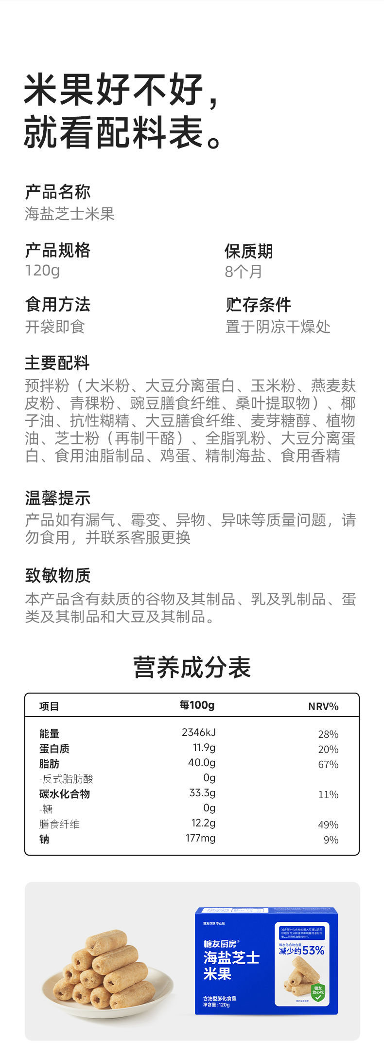 糖友厨房海盐芝士米果120g 休闲零食能量棒0蔗糖食品