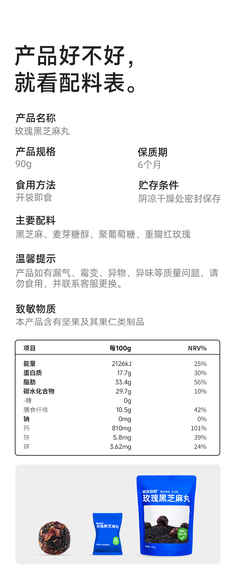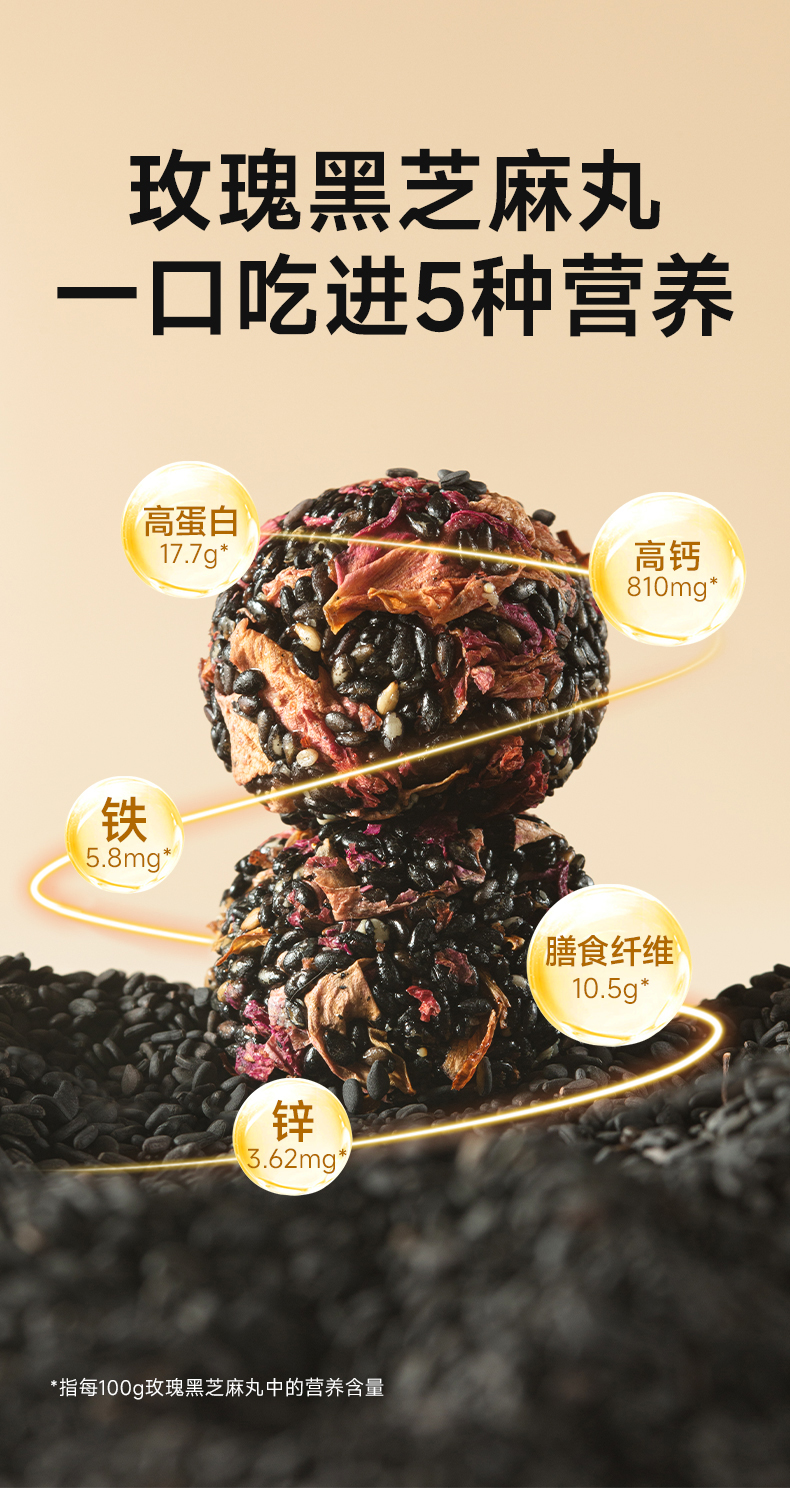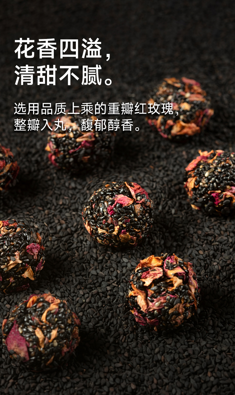 糖友厨房玫瑰黑芝麻丸90g 营养零食品糕点心