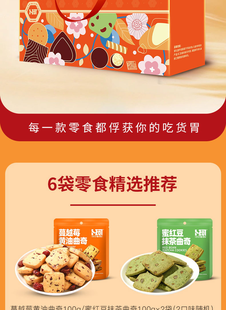 卜珂 甄心食意人气礼730克 饼干糕点心零食品礼盒装