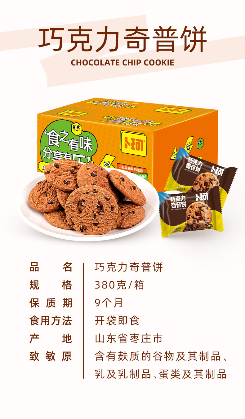 卜珂 食乐分享巧克力奇普饼380克 饼干糕点心零食品