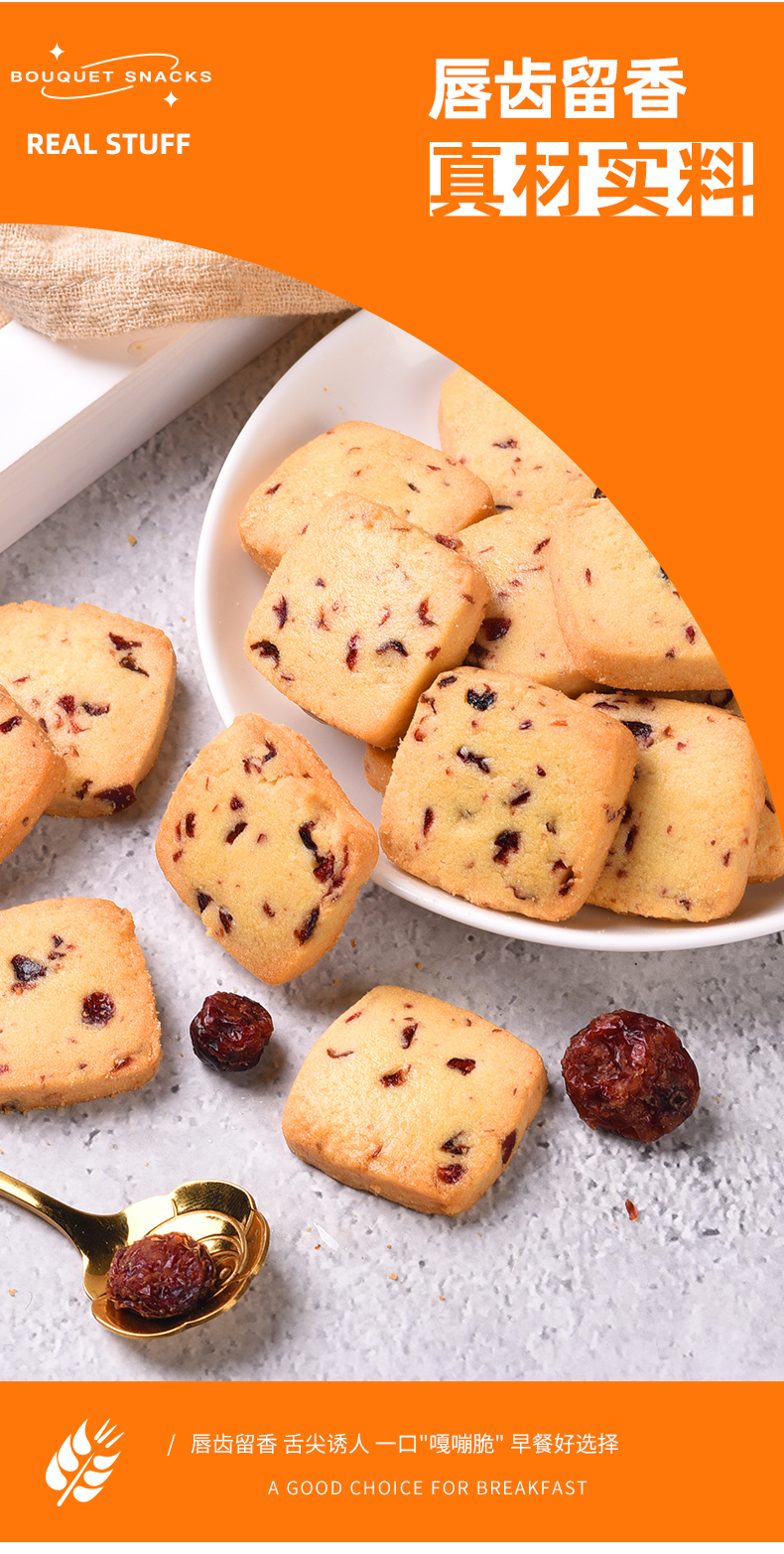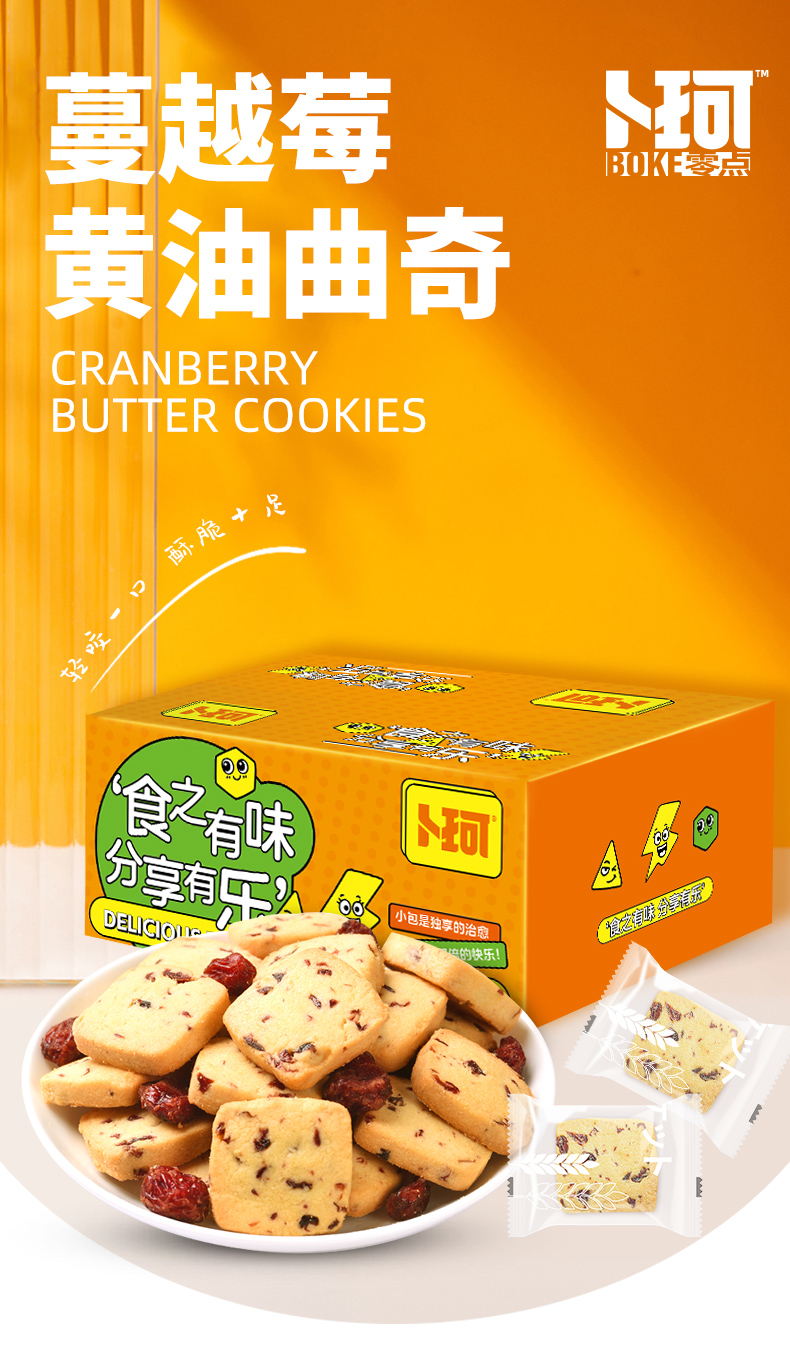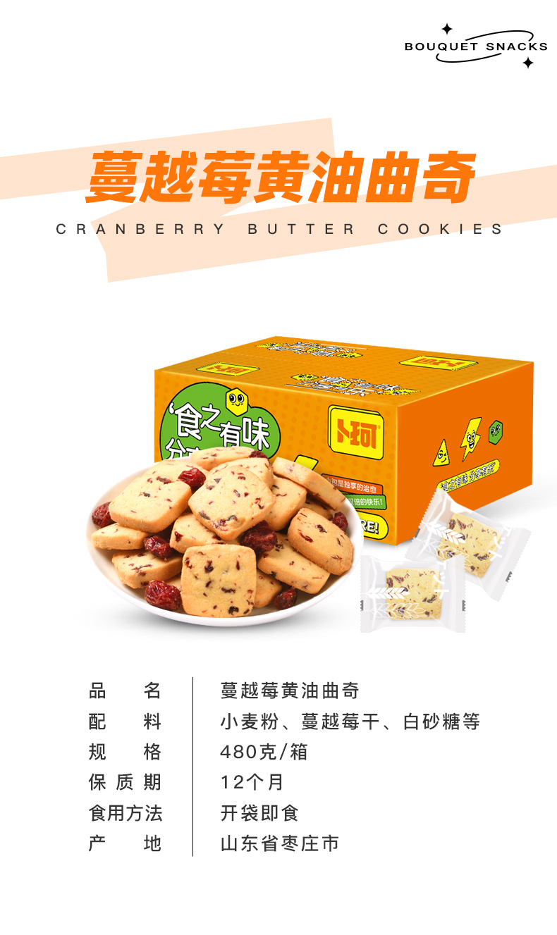 卜珂 食乐分享蔓越莓黄油曲奇480克 饼干糕点心零食品