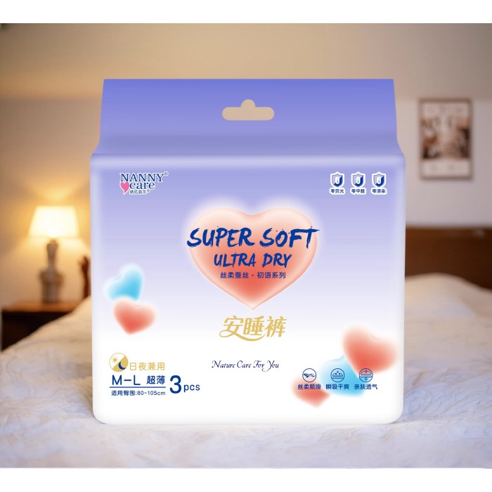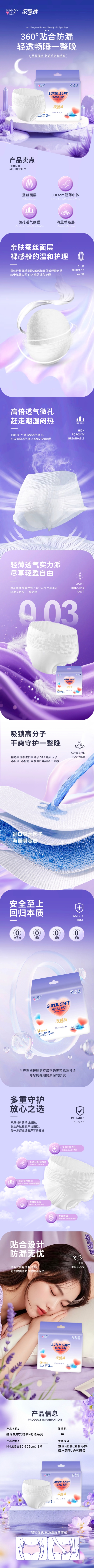 【透气轻薄】纳尼凯尔蚕丝亲肤透气防漏安睡裤 M-L码(3片/包)