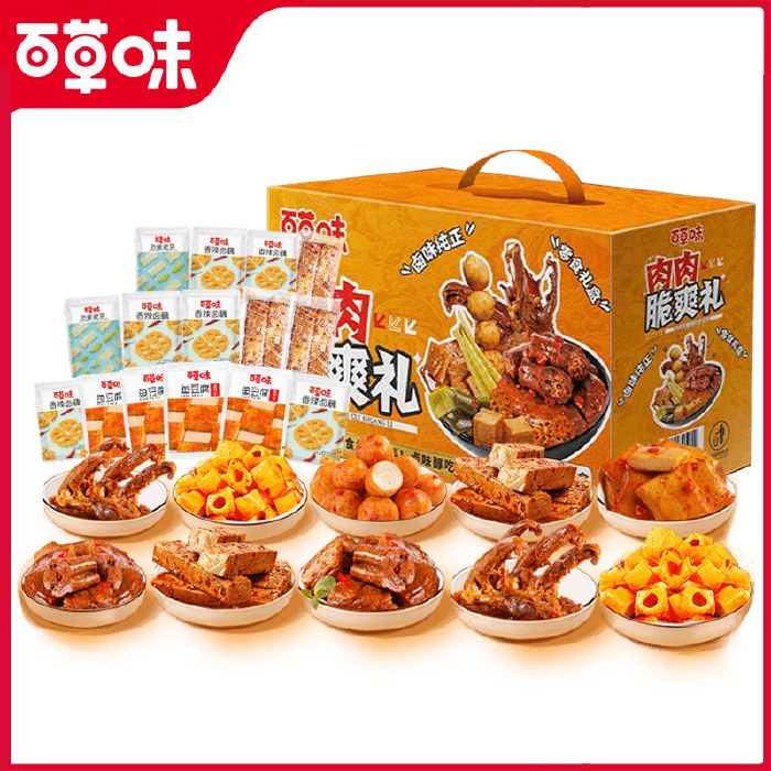 【百草味】 肉肉脆爽礼564g 肉类零食大礼包辣卤味礼盒年货