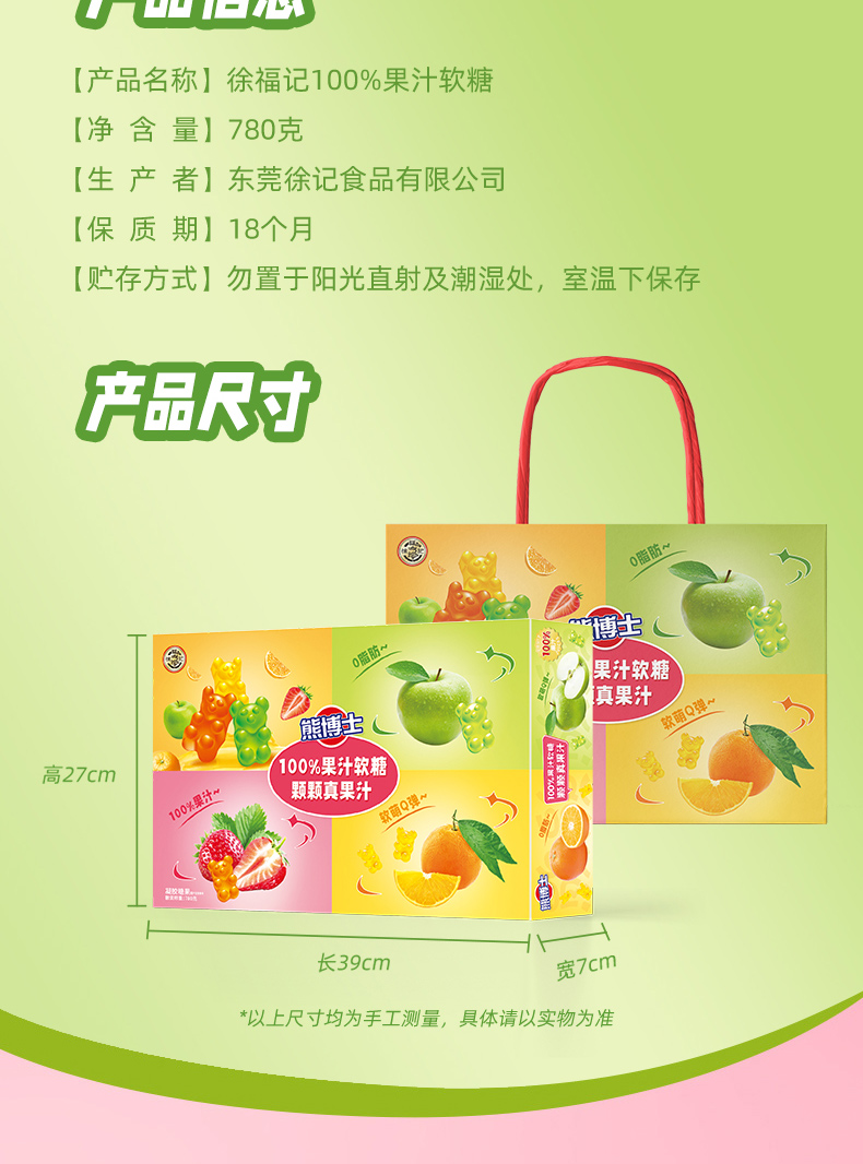 徐福记100%果汁软糖礼盒(附手提袋)780g