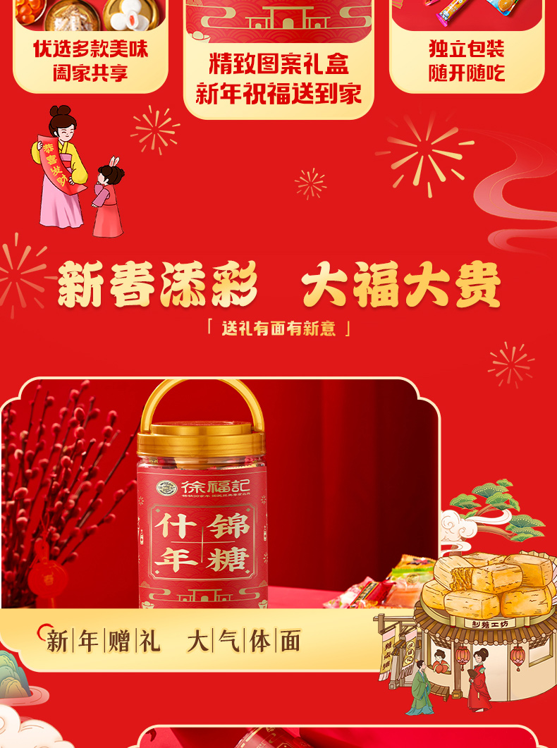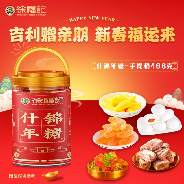 徐福记什锦年糖桶装468g 新年糖果软糖酥心糖礼盒