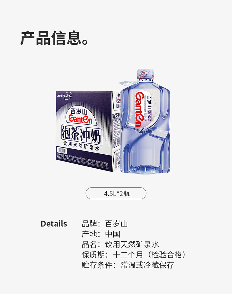 百岁山 4.5L*2瓶 /箱 天然矿泉水 饮用水整箱装