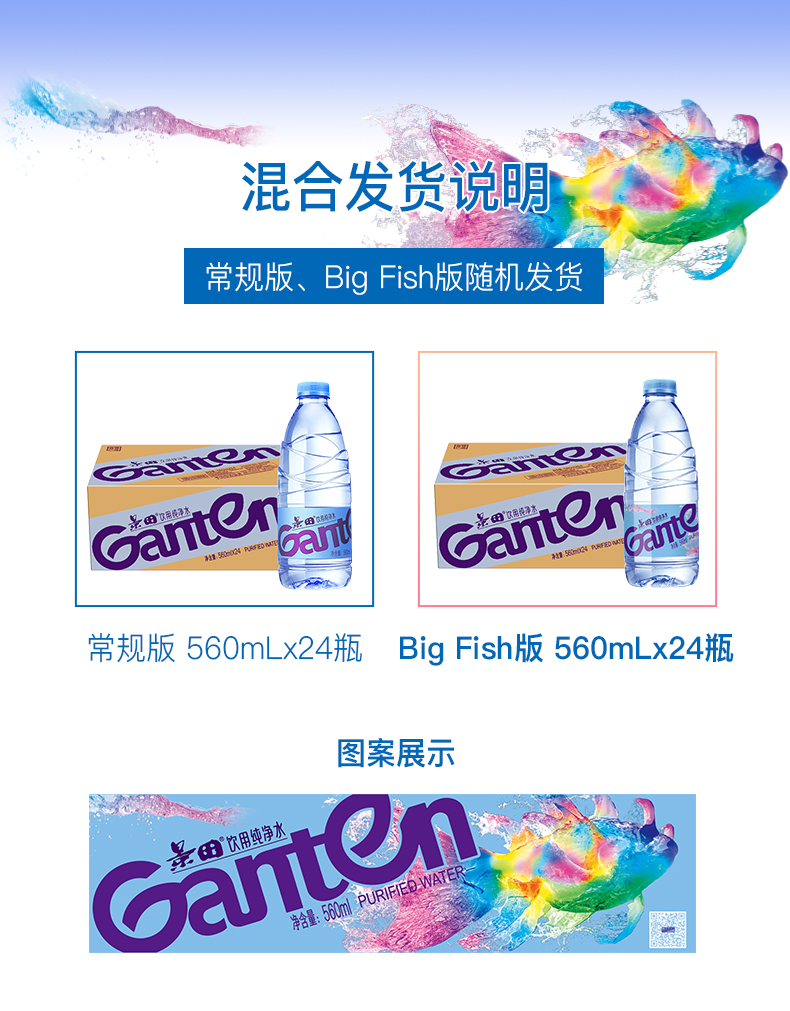 景田 饮用纯净水 560ml*24瓶 /箱 饮用水整箱装