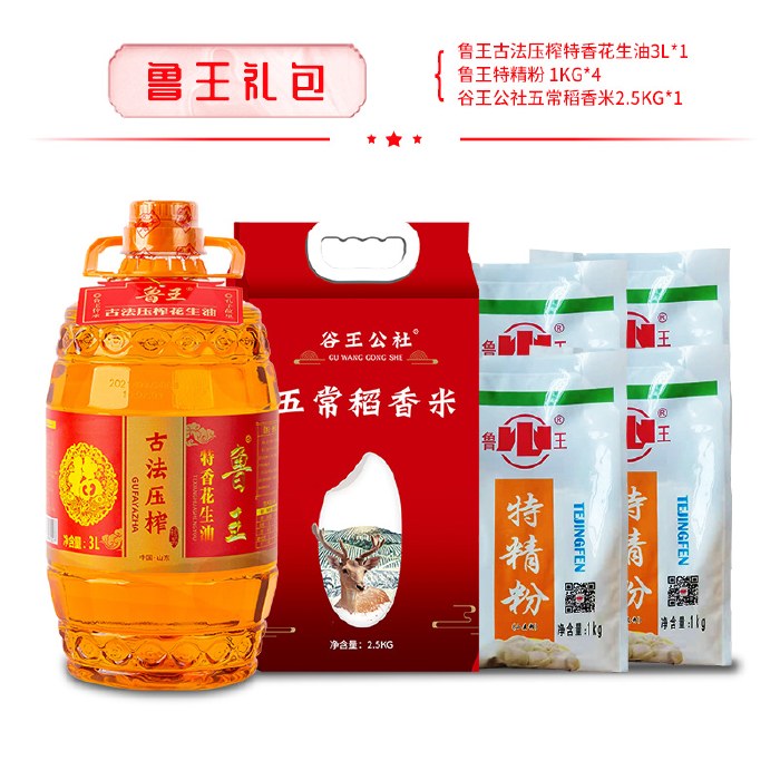 鲁王 米面油礼包D 粮油大米食用油小麦粉面粉大礼包