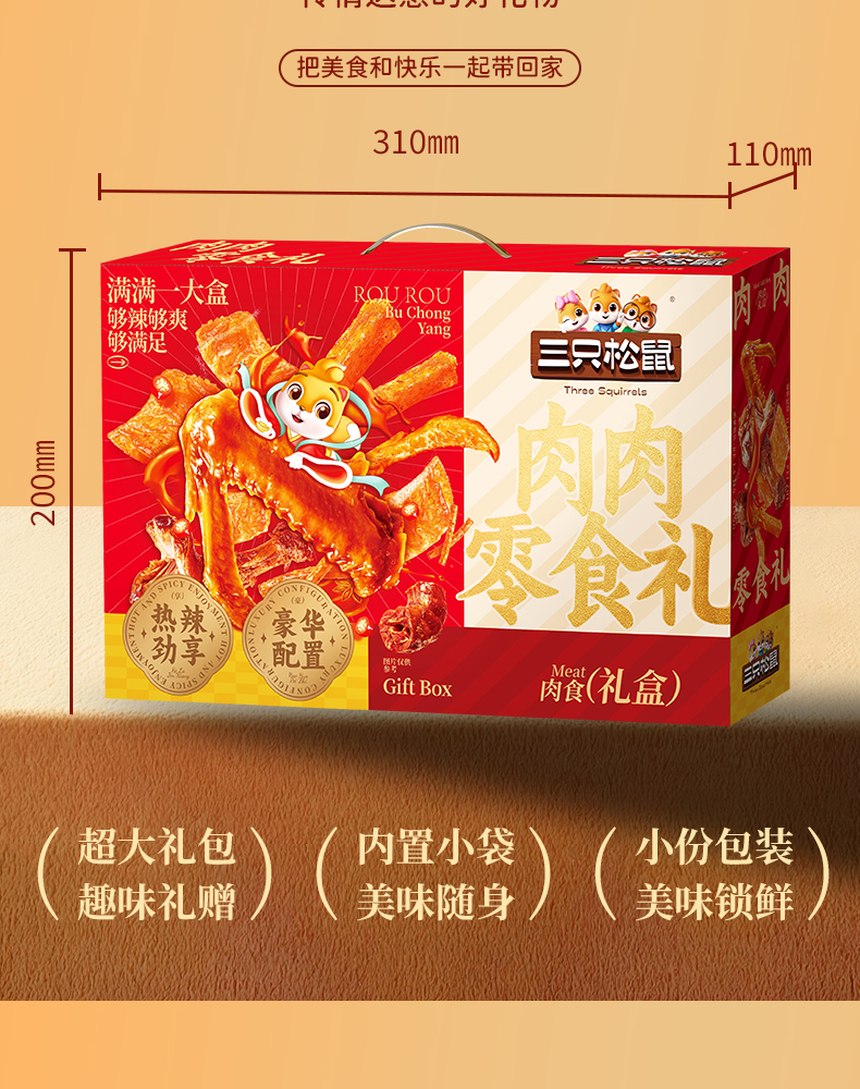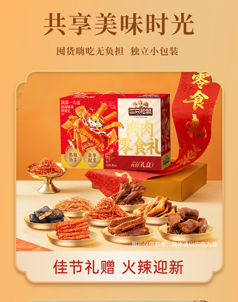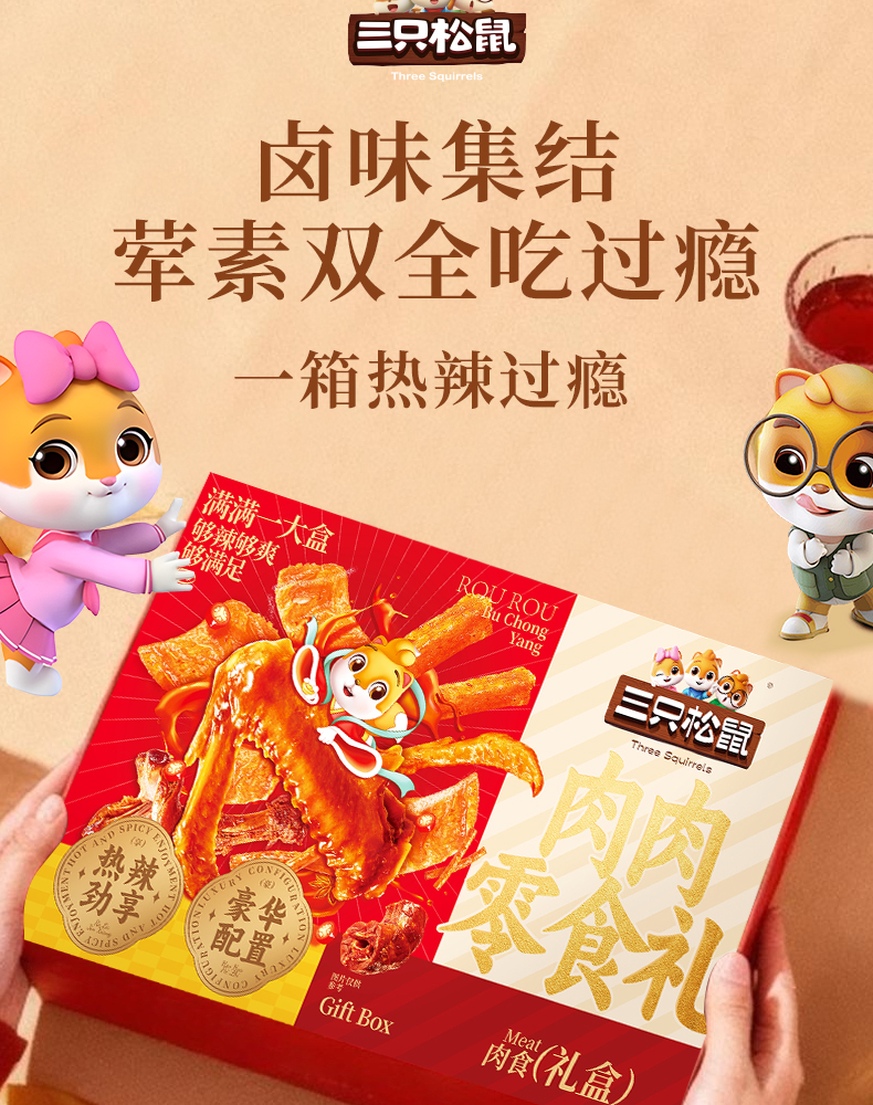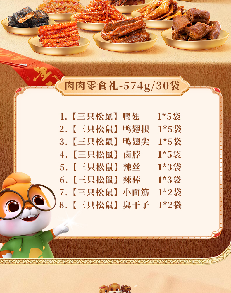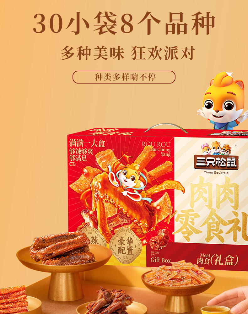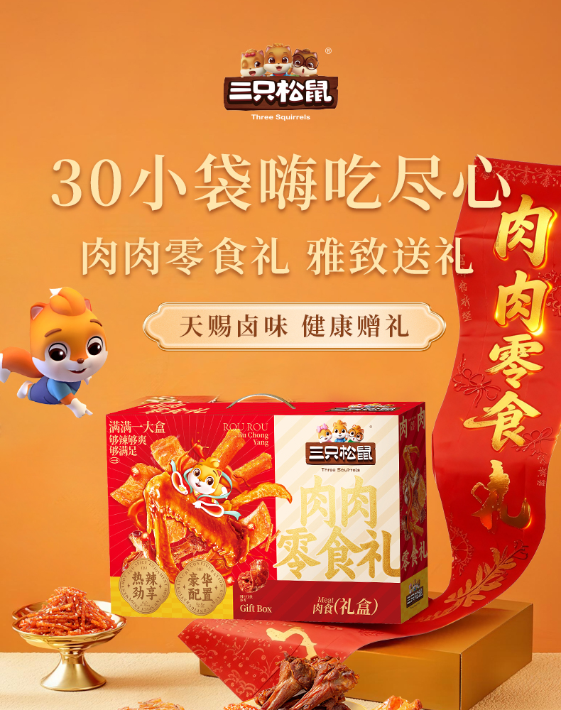 【三只松鼠】肉肉零食礼574g(30袋)卤味零食礼盒