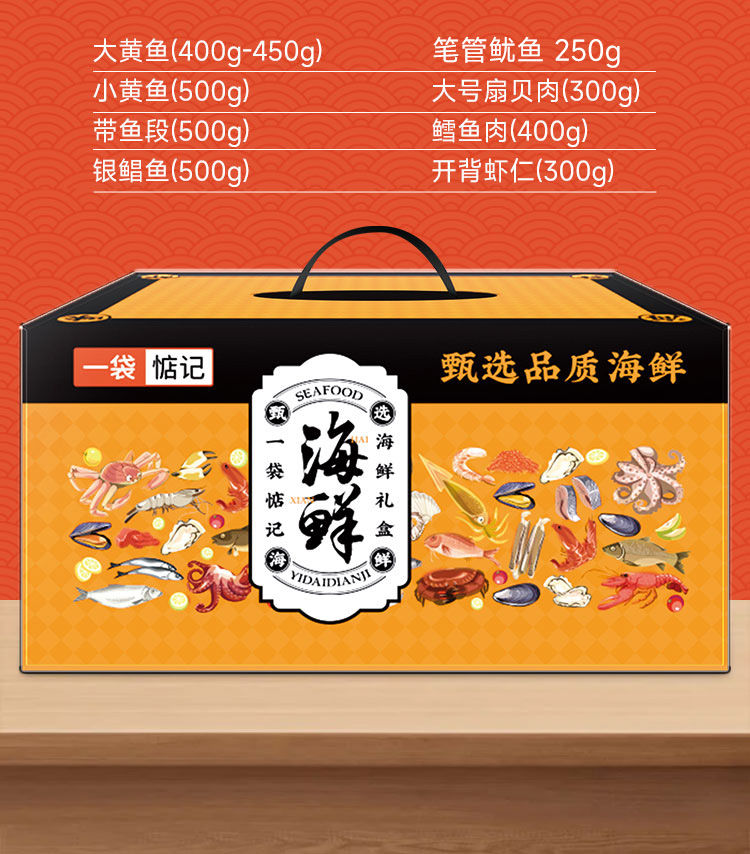 一袋惦记 海鲜大礼盒-999A型3750g(随机附赠品5选1)