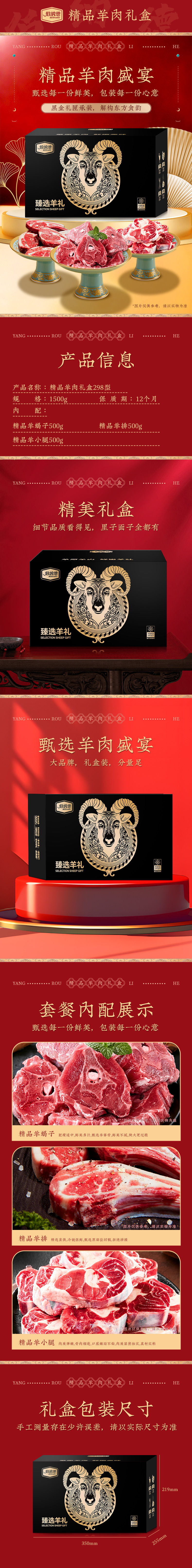 伯纳德精品羊肉礼盒298型 1500g 生鲜羊蝎子羊排肉类冻品食品