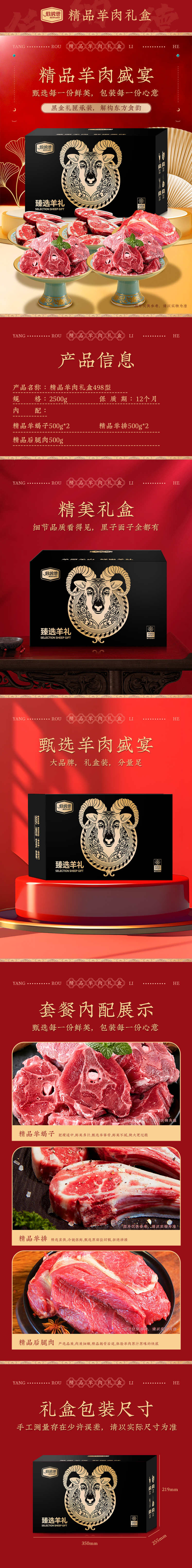 伯纳德精品羊肉礼盒398型 2500g 生鲜羊蝎子羊排肉类冻品食品