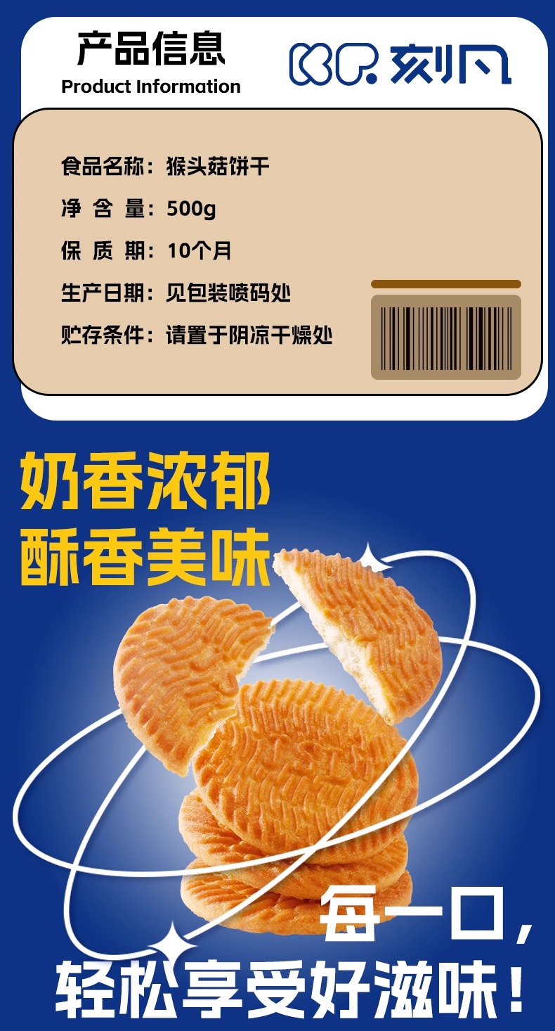 刻凡 猴头菇饼干500g 早餐下午茶饼干糕点心零食品